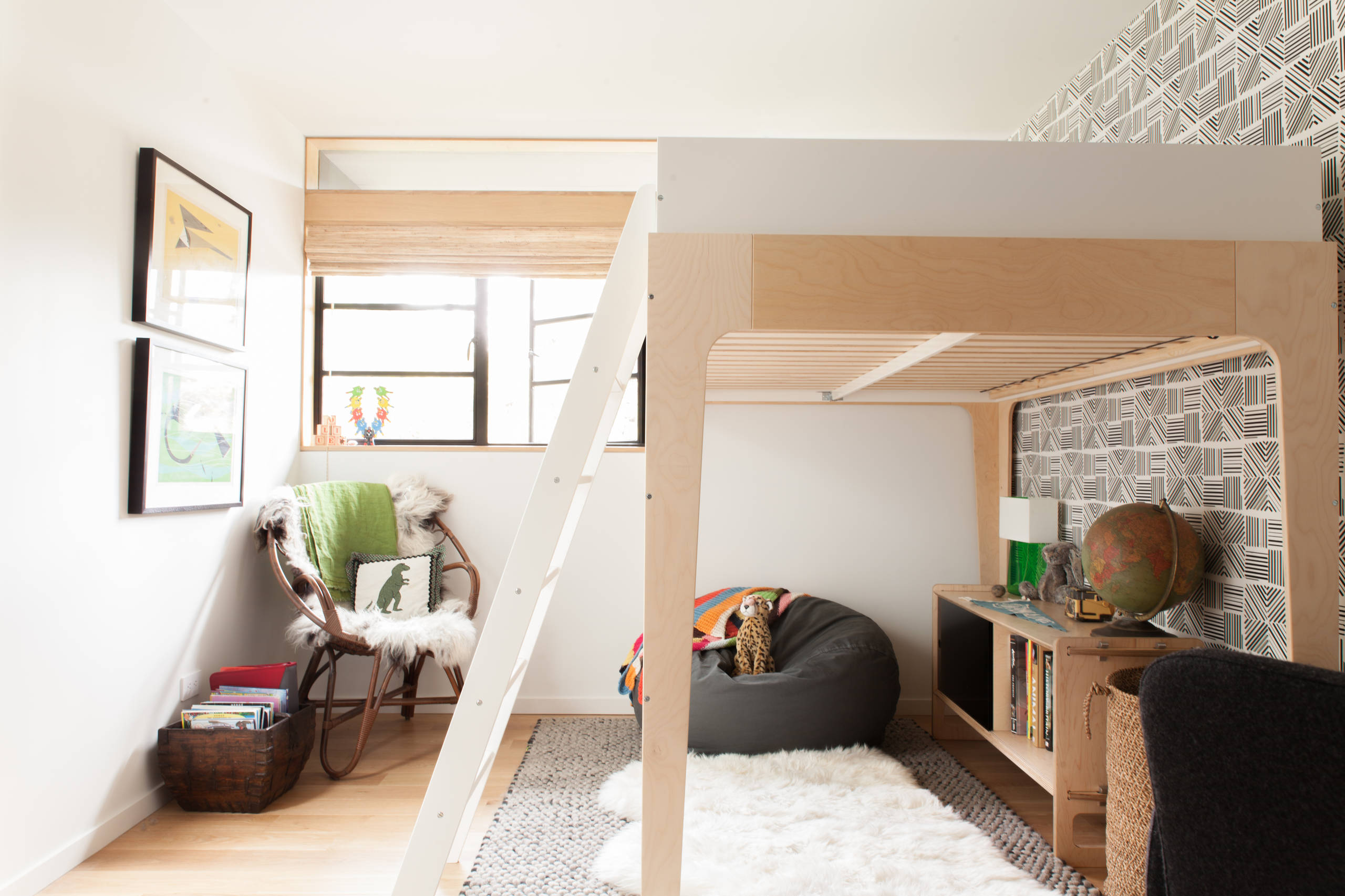 Diese Leseecke entstand für den dreijährigen Rex, der im australischen Geelong zu Hause ist. Die Designerinnen Jacinda Malloy und Penelope Hill gestalteten den Raum so, dass die Leseecke den Mittelpunkt des Kinderzimmers bildet. Prints, Aufkleber, Kissen und andere Deko-Accessoires sind auf die Einrichtung abgestimmt und ergänzen die fantasievollen Buchcover. Wie der kleine Rex zu seiner neuen Leseecke kam, lesen Sie hier.