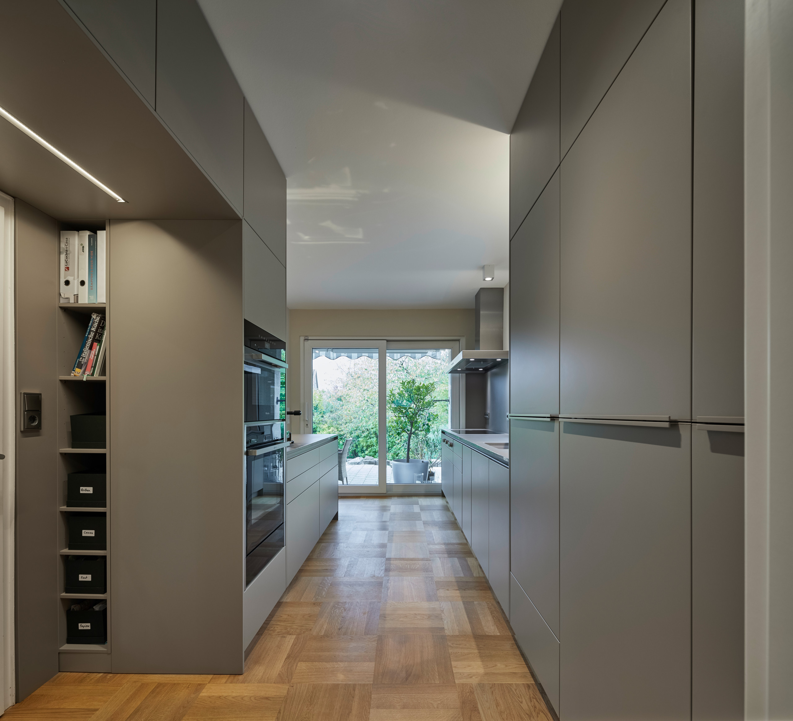 Was sich die Auftraggeber wünschten: eine Küche mit großer Arbeitsfläche und viel Stauraum. Die Familie kocht sehr gern und hatte genaue Vorstellungen davon, wie viel Platz sie benötigt.