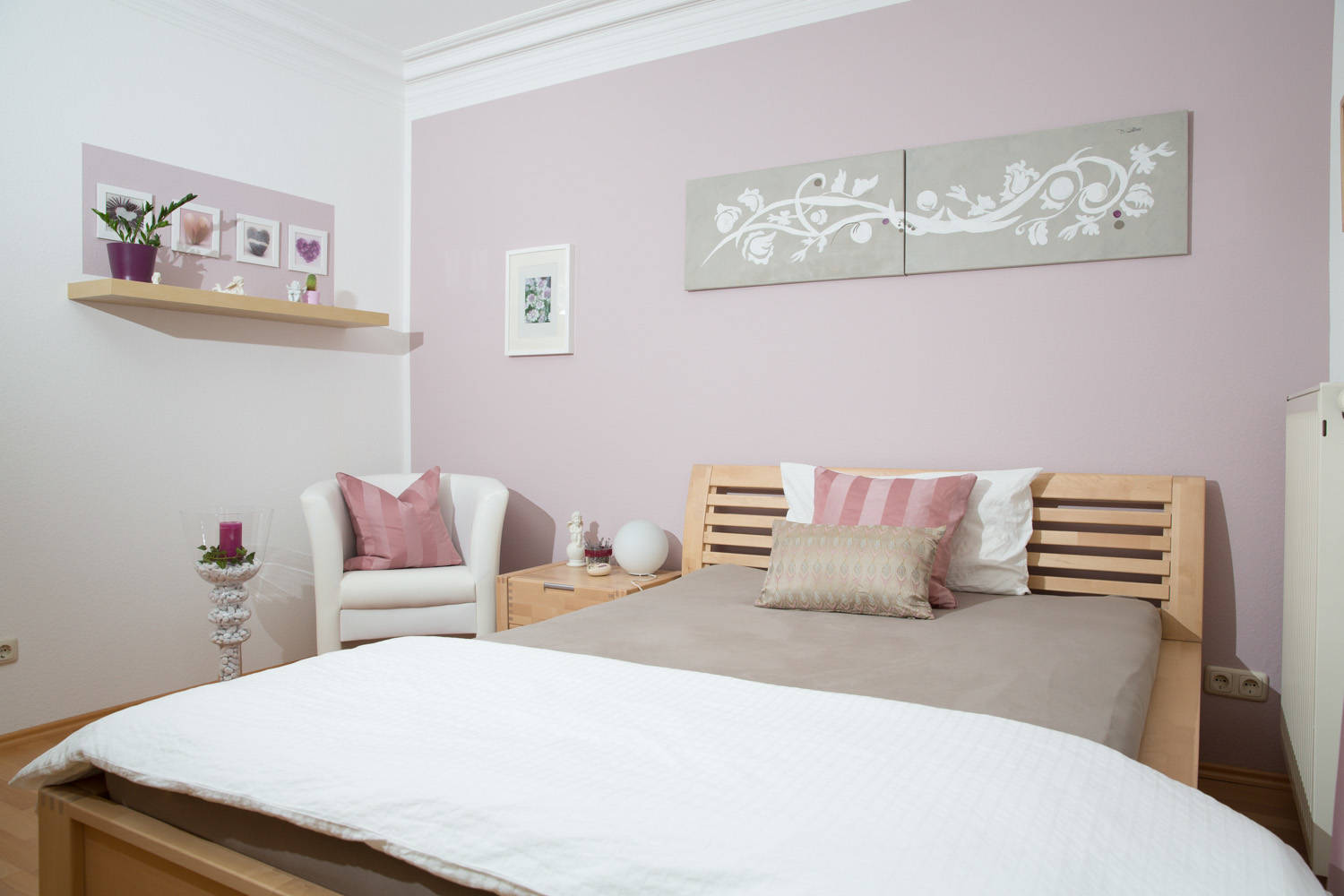 Rosa hat leider den Ruf, süß und prinzessinenhaft zu sein. Wählt man eine gedämpfte Nuance, die viel Grau im Gepäck hat, besteht diese Gefahr allerdings überhaupt nicht. Ein zartes Graurosa strahlt in Kombination mit Natur- und weiteren Grautönen Ruhe und Geborgenheit aus. Damit schafft der pudrige Ton vor allem im Schlafzimmer eine äußerst harmonische Wohlfühlatmosphäre.