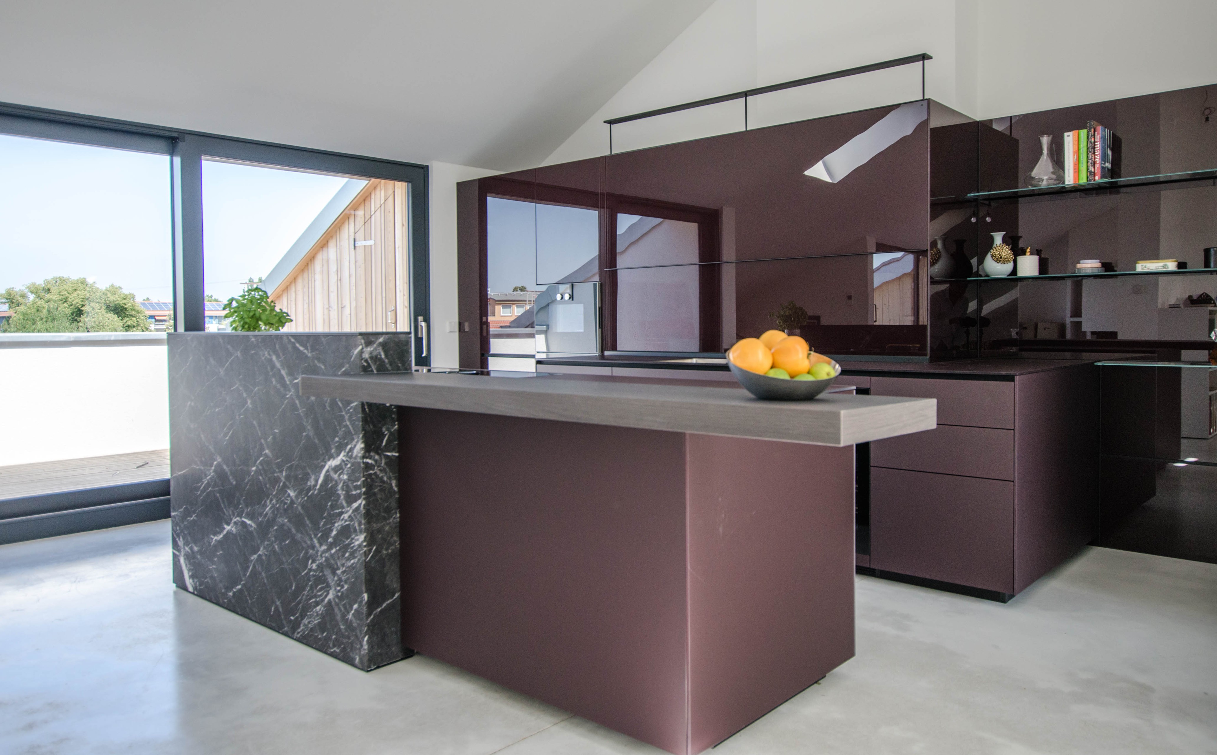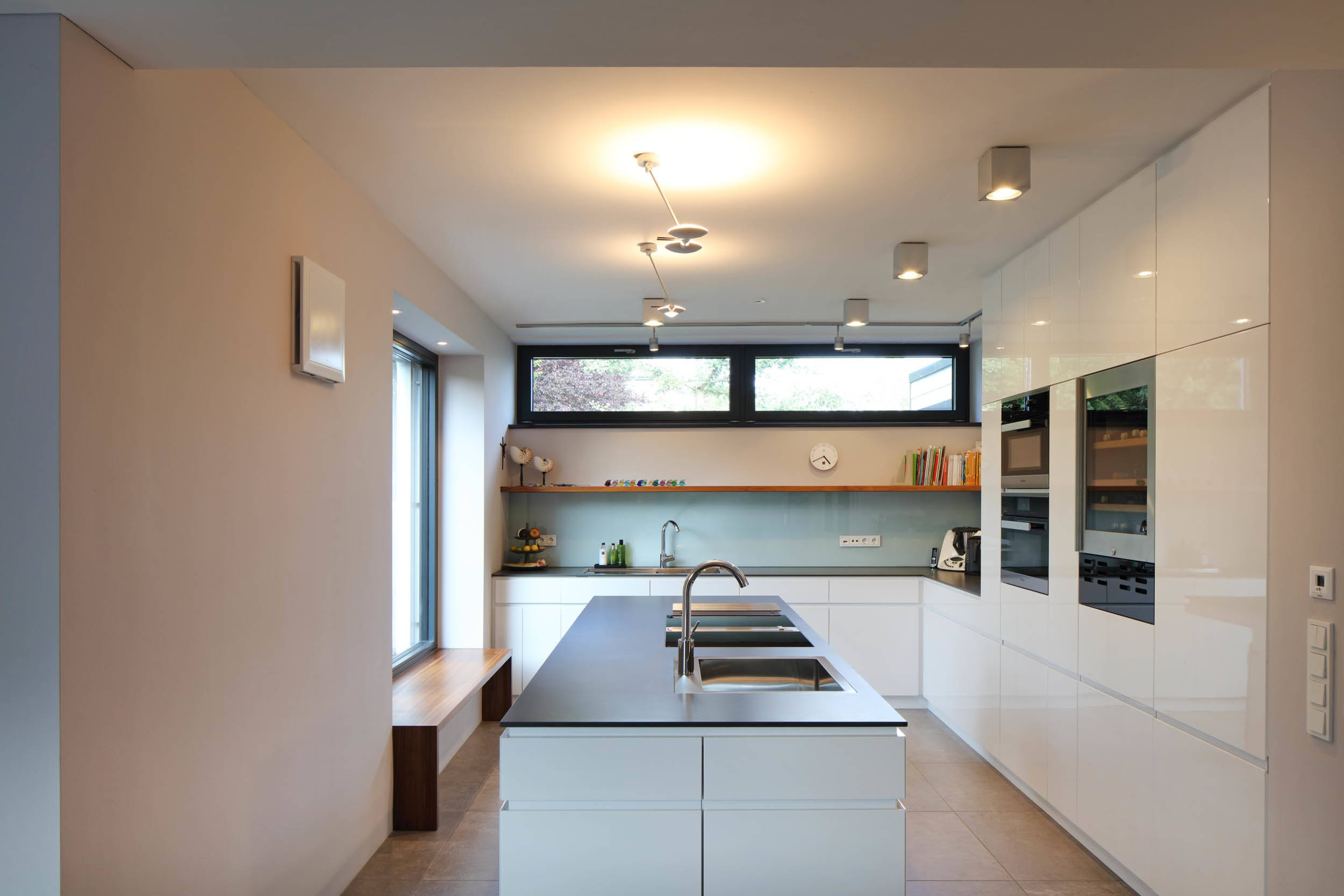 „Der frei stehende Block bietet die Möglichkeit, gemeinsam mit den Gästen zu kochen. Das Sitzfenster lädt zum Genießen eines Kaffees und der Aussicht ein“, sagt Erik Kretzinger.