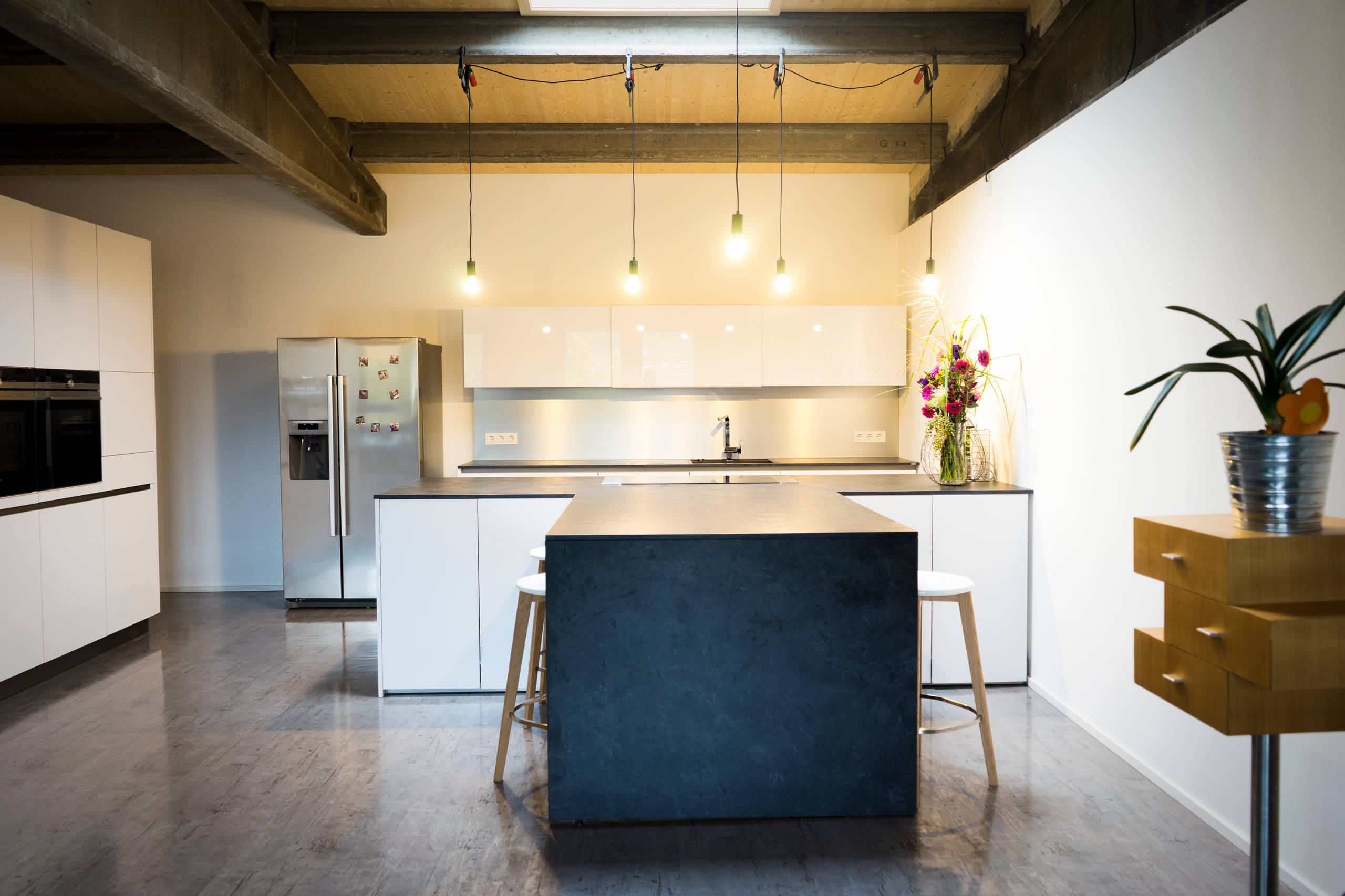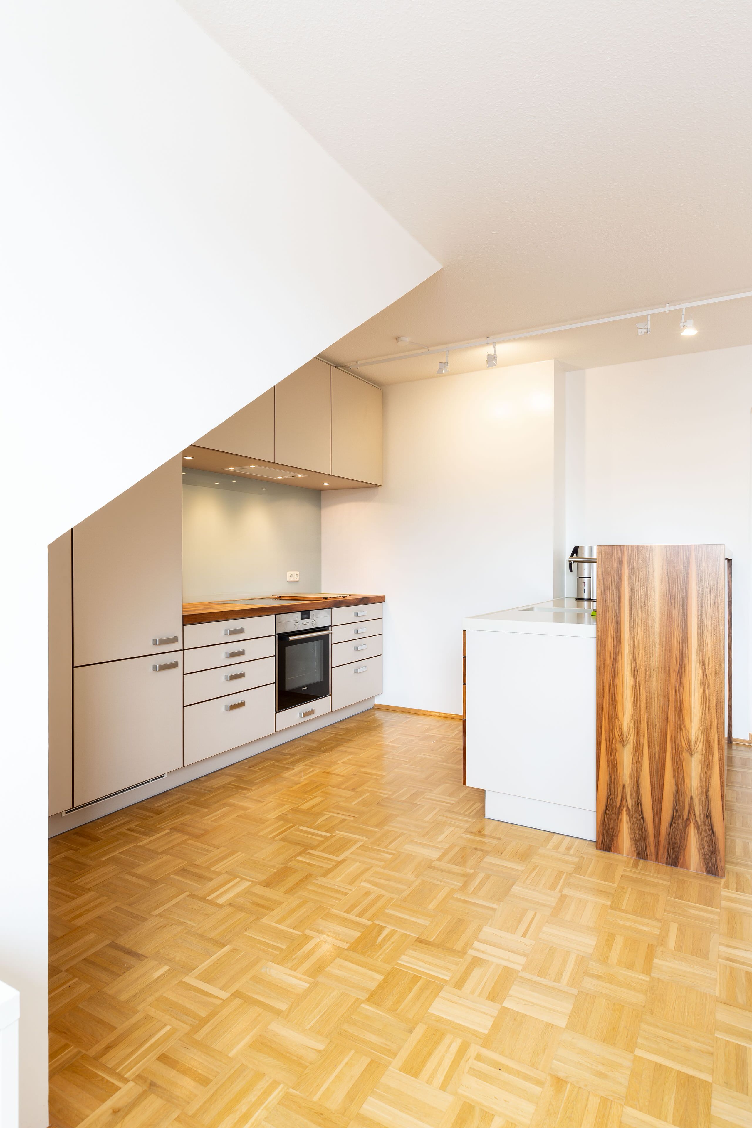 Da der Küchenbereich vom Wohn- und Essbereich einsehbar ist, war es mein Ziel, eine wohnliche, gemütliche Küche zu gestalten, bei der die technischen Details möglichst unsichtbar sind und gleichzeitig eine hohe Funktionalität gegeben ist.