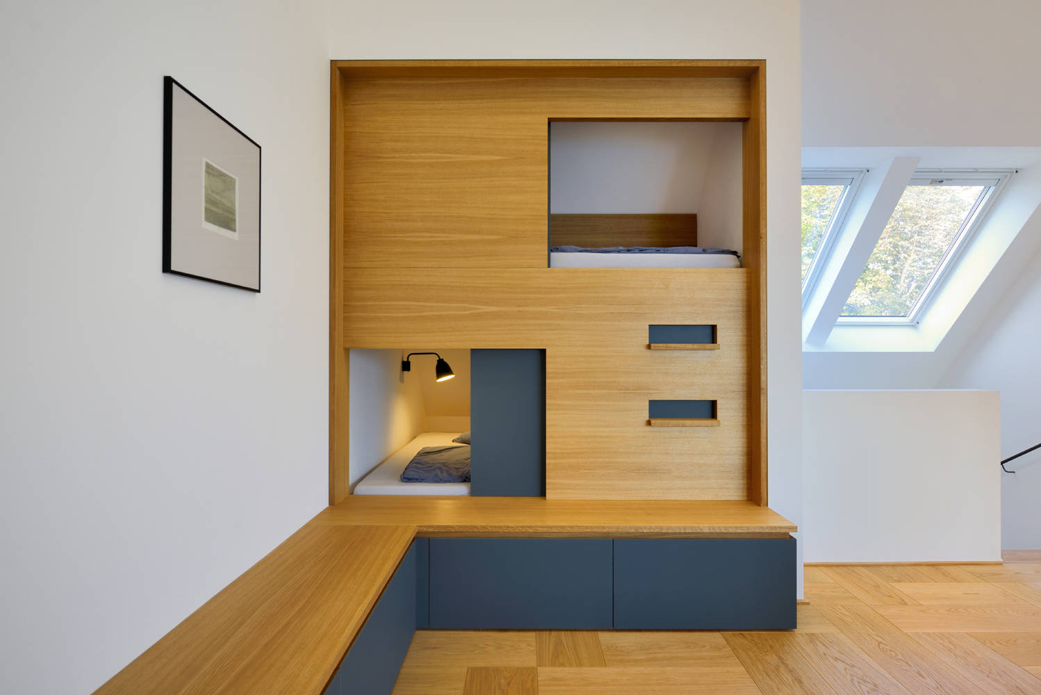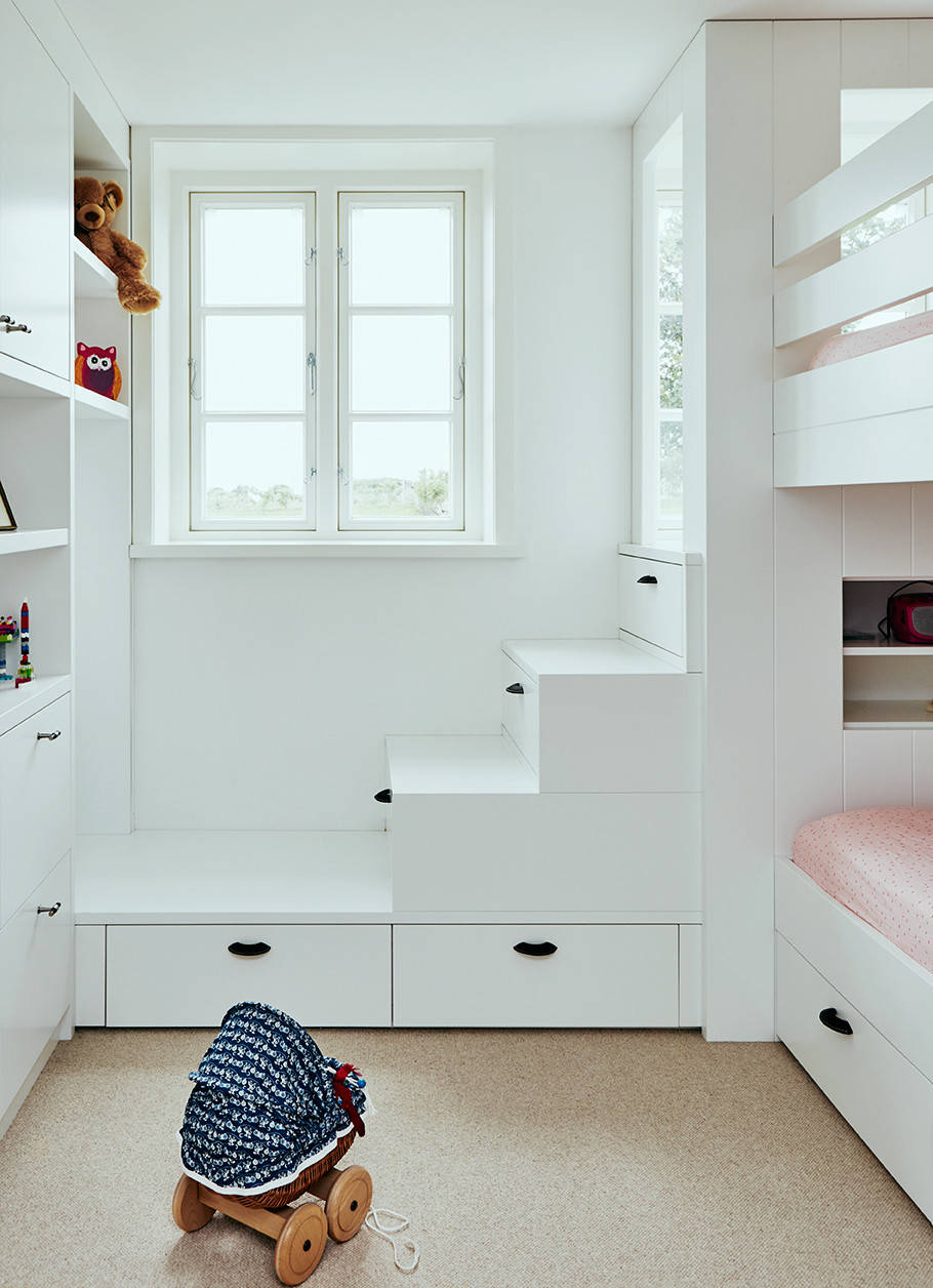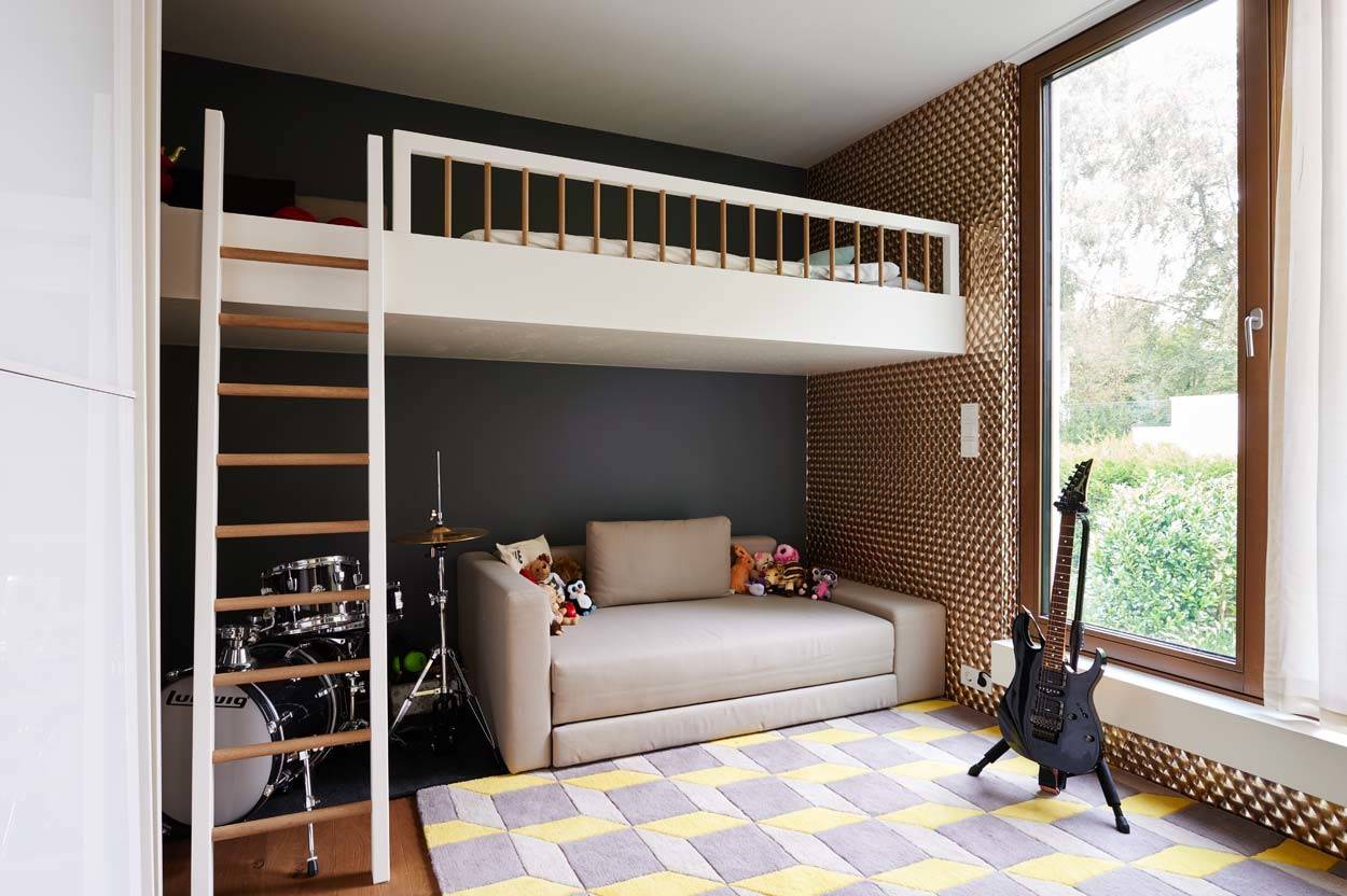 Sina Gwosdzik denkt bei dem Entwurf eines Hochbetts immer an Funktionalität und Komfort: „Es hat sich gezeigt, dass es immer besser ist, bei einem Einbau mehr Platz zur Decke einzuplanen. Das bietet auf Dauer einfach mehr Komfort. Vor allem wenn sich die Eltern zu den Kindern dazulegen.“ Auch Friederike Grotheer empfiehlt, grundsätzlich lieber mehr Fläche um die Matratze herum einzuplanen: „Eine Etage mit großer Schlafebene ist auf Dauer besser als ein enges Hochbett.“