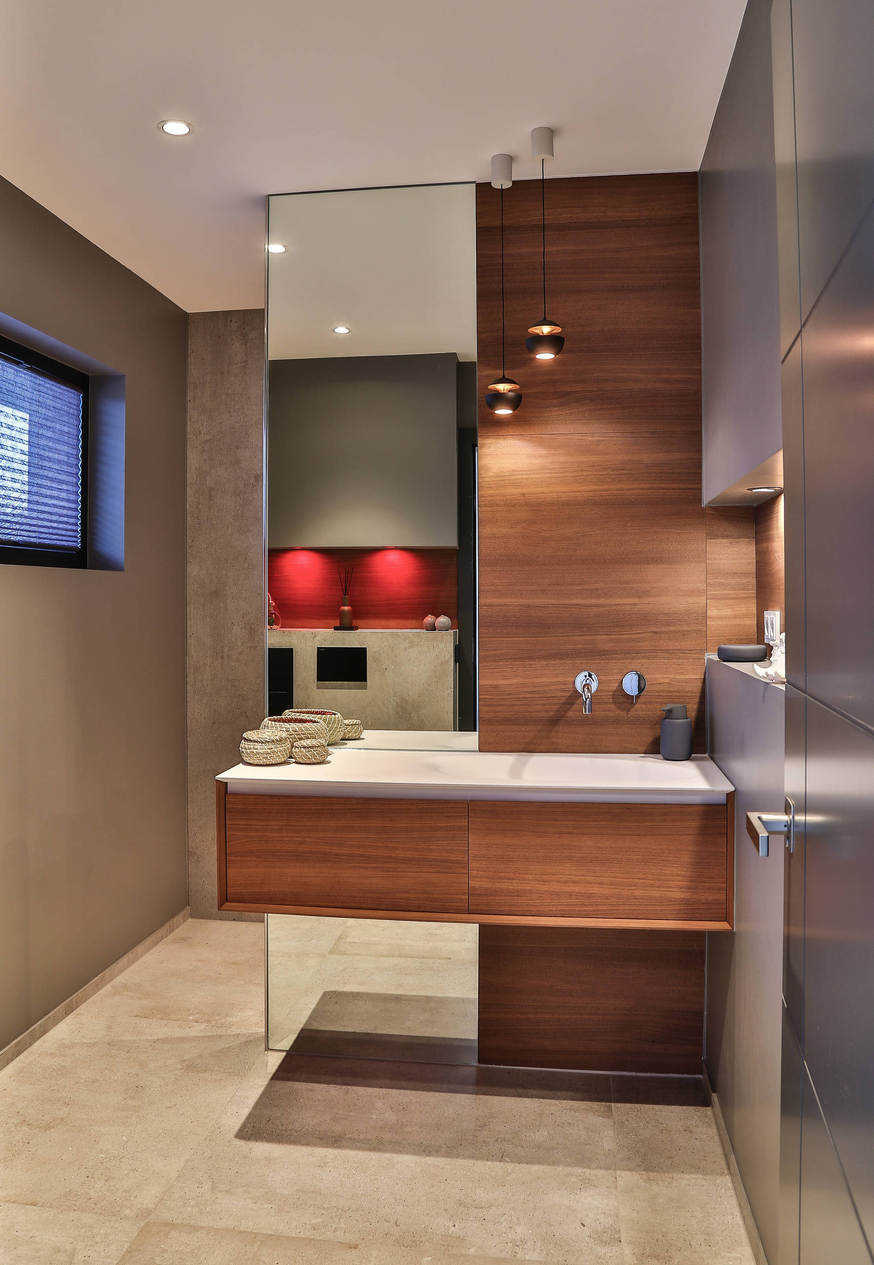 - Beleuchtung: Als Grundbeleuchtung wurden Spots in die Decke integriert. Zusätzliche Beleuchtung über dem Spiegel von der Firma Hera.