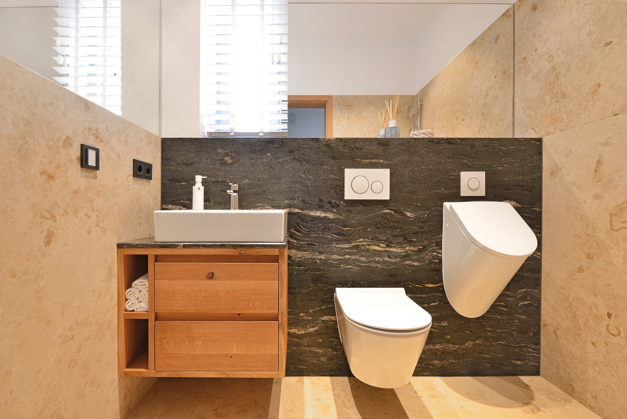 - Waschtischmöbel: Eichenhaus AG, wilde Spessarteiche, massiv, natürlich geölt.