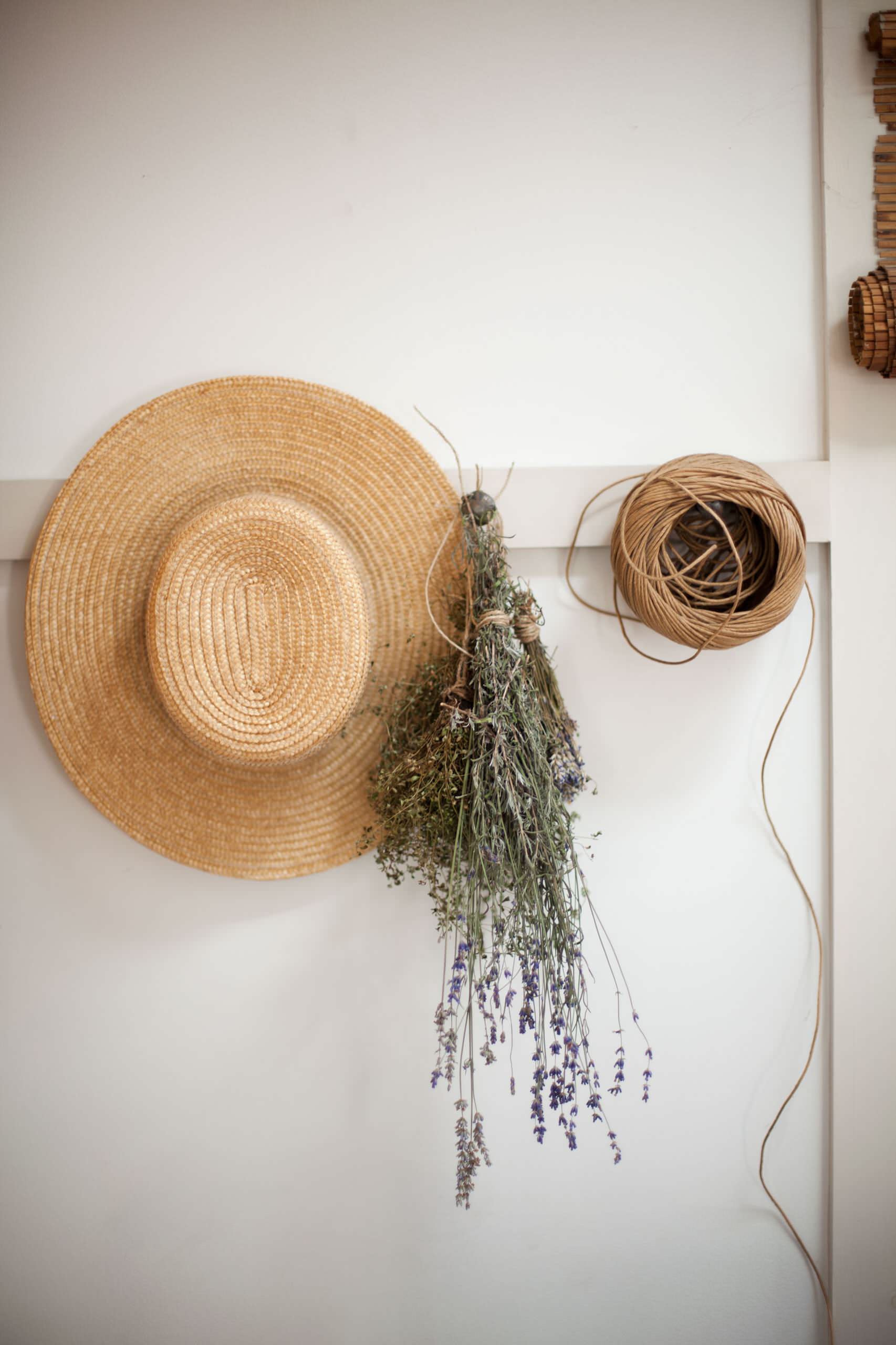 Binden sie den Strauß unten mit Band oder einem dünnem Strick zusammen und hängen Sie ihn verkehrt herum in einem trockenen, gut belüfteten, eher kühlen Raum auf. Vermeiden Sie das Trocknen in der Küche – hier wird der Vorgang durch die hohe Feuchtigkeit beeinträchtigt. Um die Farbpracht so gut wie möglich zu erhalten, sollte möglichst ein dunkler Raum ohne Lichteinstrahlung gewählt werden.
