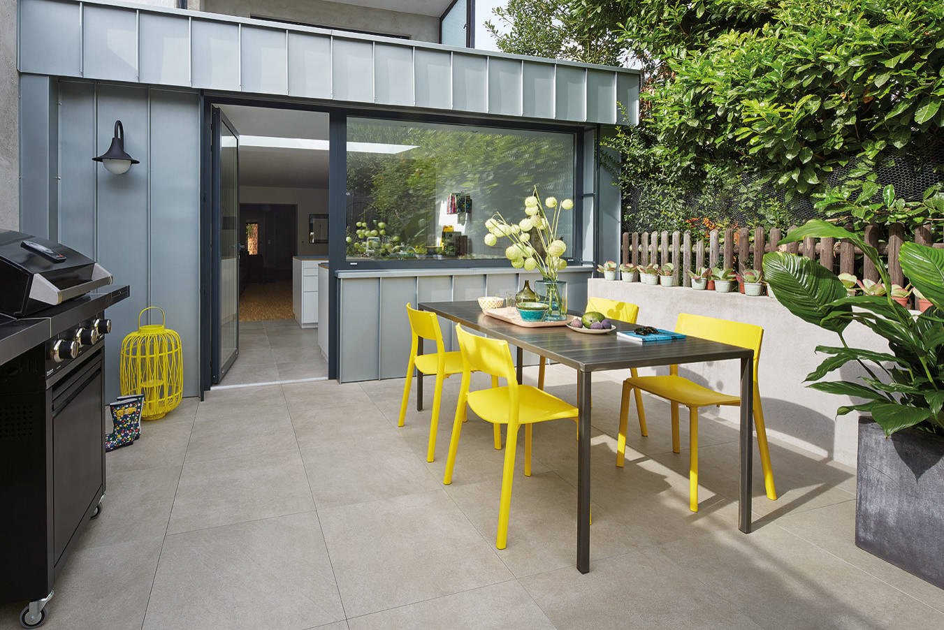 Fliesen nehmen aufgrund ihrer geringen Porosität so gut wie kein Wasser auf und sind daher frostsicher. Feinsteinzeug mit seinen großformatigen Platten erzeugt ein edles und ruhiges Gesamtbild. Ein weiterer Vorteil dieser Materialwahl: Keramische Bodenbeläge für die Terrasse sind besonders rutschfest.