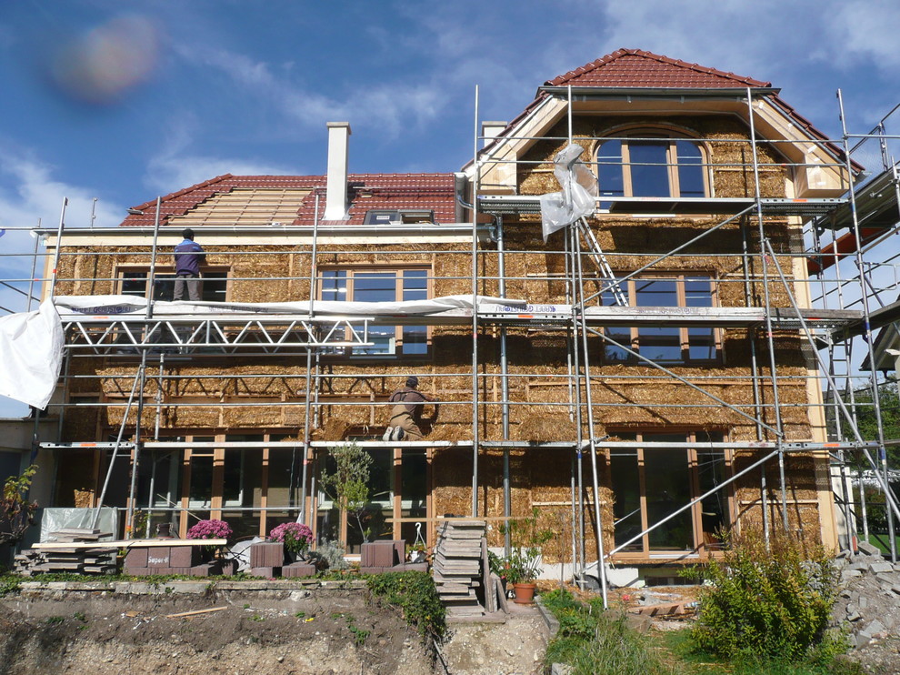 Die Einsatzgebiete. Aus Stroh können ganze Häuser gebaut werden. Strohballenhäuser bedürfen einer Einzelfallgenehmigung. Im Holzständerbau können Wände und Dach aus Stroh bestehen.