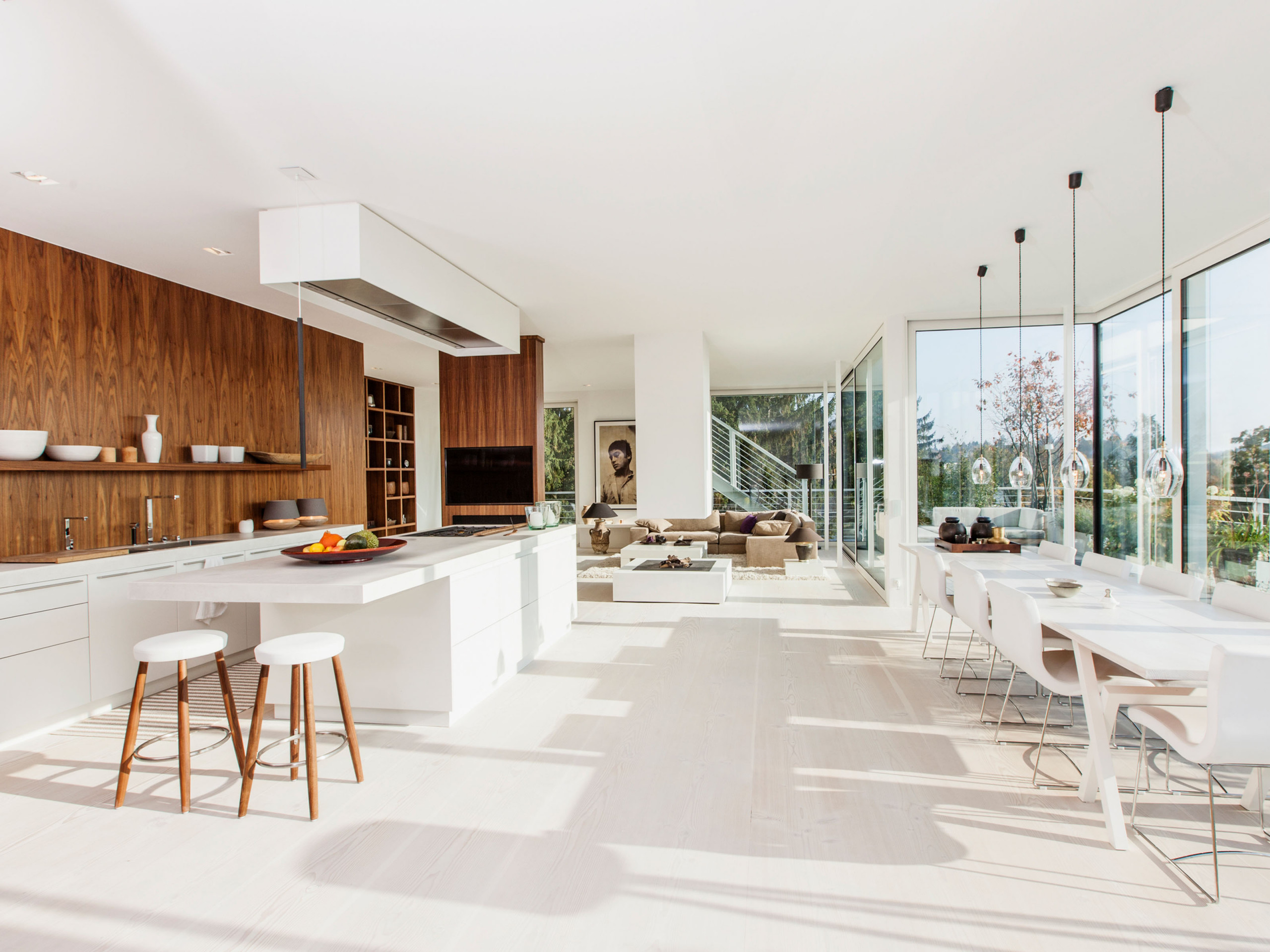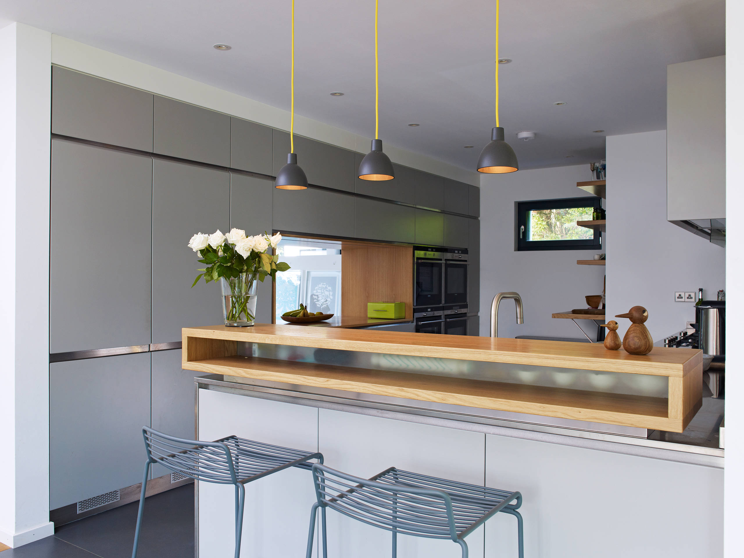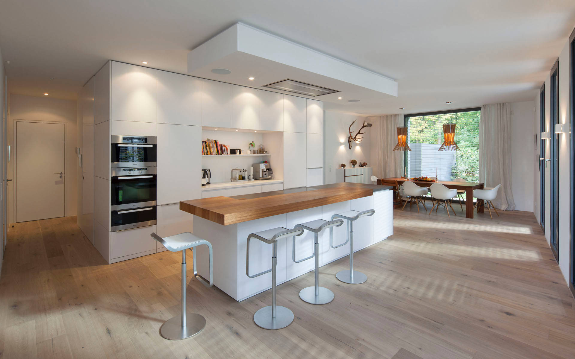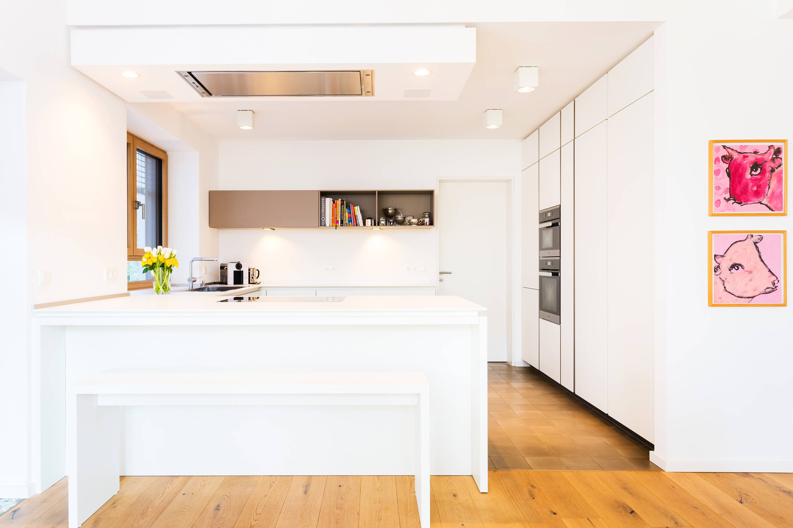 Einer kocht, die anderen schnippeln: Wie praktisch ist da ein Tresen direkt an der Küchenzeile? So wird der Raum zum kommunikativen Zentrum des Hauses. An der Küchentheke kann man zusammen kochen, am Laptop arbeiten und nebenbei die Suppe überwachen oder alle zum gemeinsamen Frühstück versammeln.