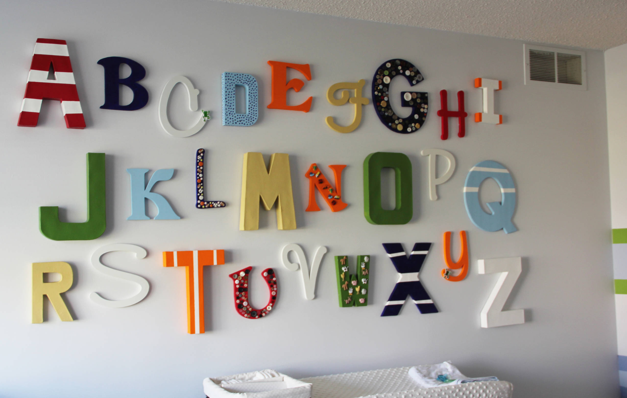 Anfangsbuchstaben oder ganze Name sind Ihnen zu profan, und das komplette Alphabet finden Sie zu lang? Dann bringen Sie doch eine echte Botschaft im Kinderzimmer unter!