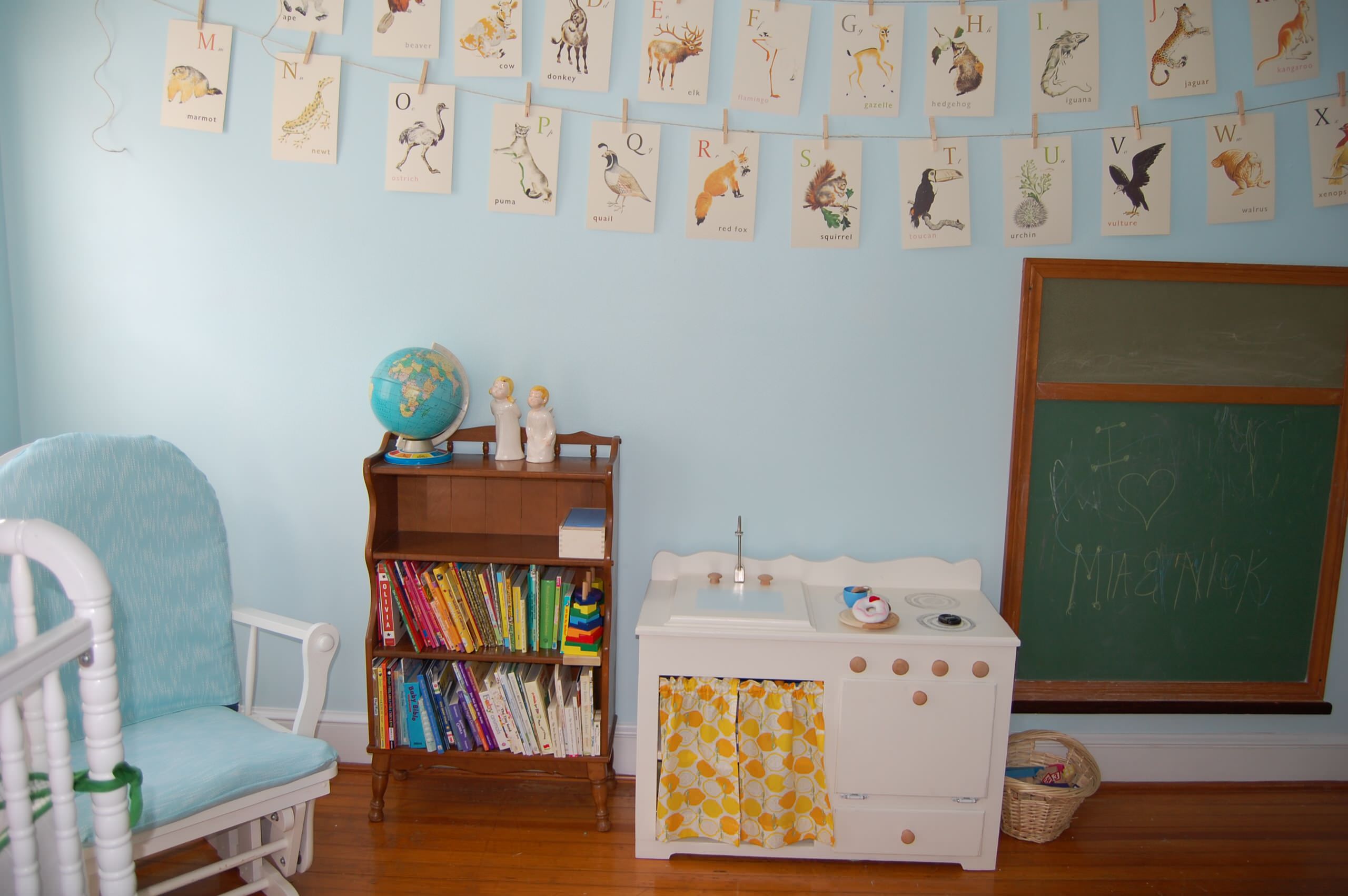 Die Aufforderung über dem Bücherregal in diesem Zimmer in Phoenix kann man eigentlich kaum missverstehen. Die Buchstaben aus nostalgischen Kinderbüchern werden extra auf Bestellung von Hand gefertigt, und so ist auch jede andere Nachricht an der Kinderzimmerwand realisierbar.