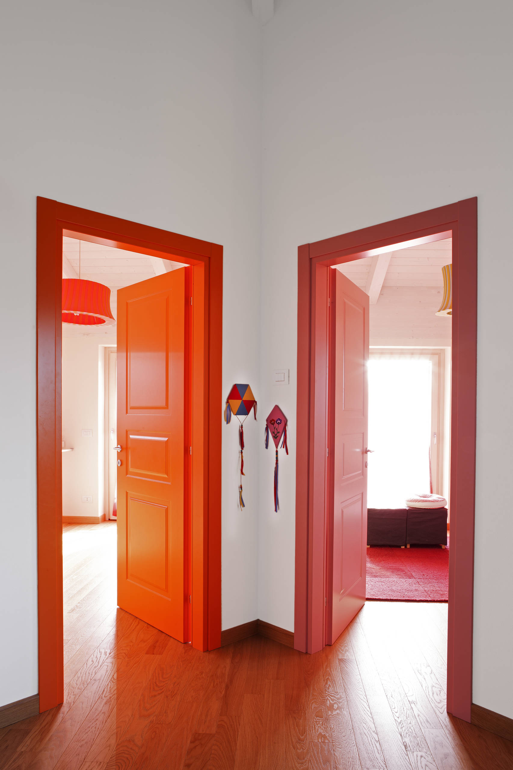 1. Nur Türrahmen, Türen und Bodenleisten farbig streichen. Bauliche Details eignen sich ideal dafür, kleine Farbakzente mit großer Wirkung zu setzen. Alte, profilierte Türrahmen schreien geradezu nach mehr Aufmerksamkeit. Geben Sie Ihrem Impuls nach und rücken Sie Zargen und Sockel in den Fokus Ihrer Flurgestaltung.