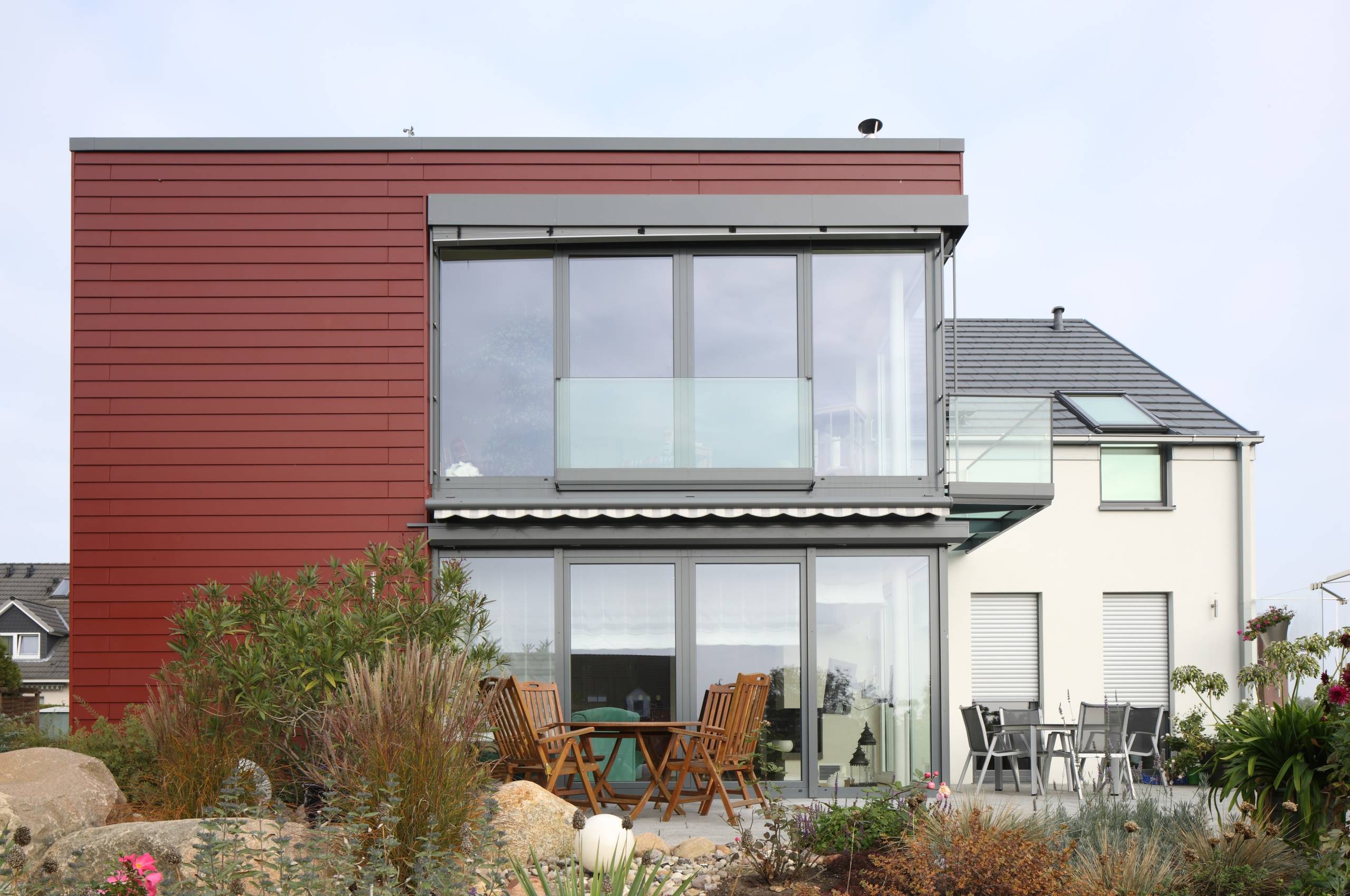 7. Faserzement. Was aus der Entfernung wie eine traditionelle Holzlattung aussieht, wie sie häufig im angloamerikanischen Raum zu finden ist, entpuppt sich erst bei sehr genauer Betrachtung als pflegeleichte Fassadenpaneele aus Faserzement. Damit entfällt zum einen das lästige Überstreichen. Zum anderen sind die Paneele von Cedral, die es wahlweise auch mit Holzstruktur in verschiedenen Farbtönen gibt, auch langlebiger und robuster als natürliches Holz.