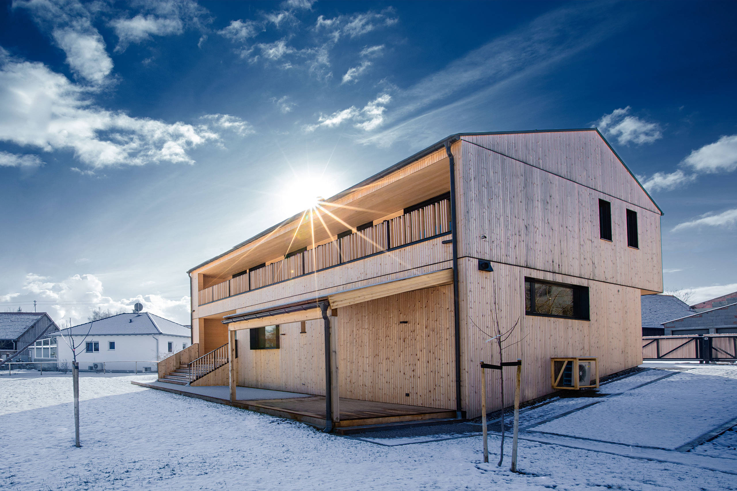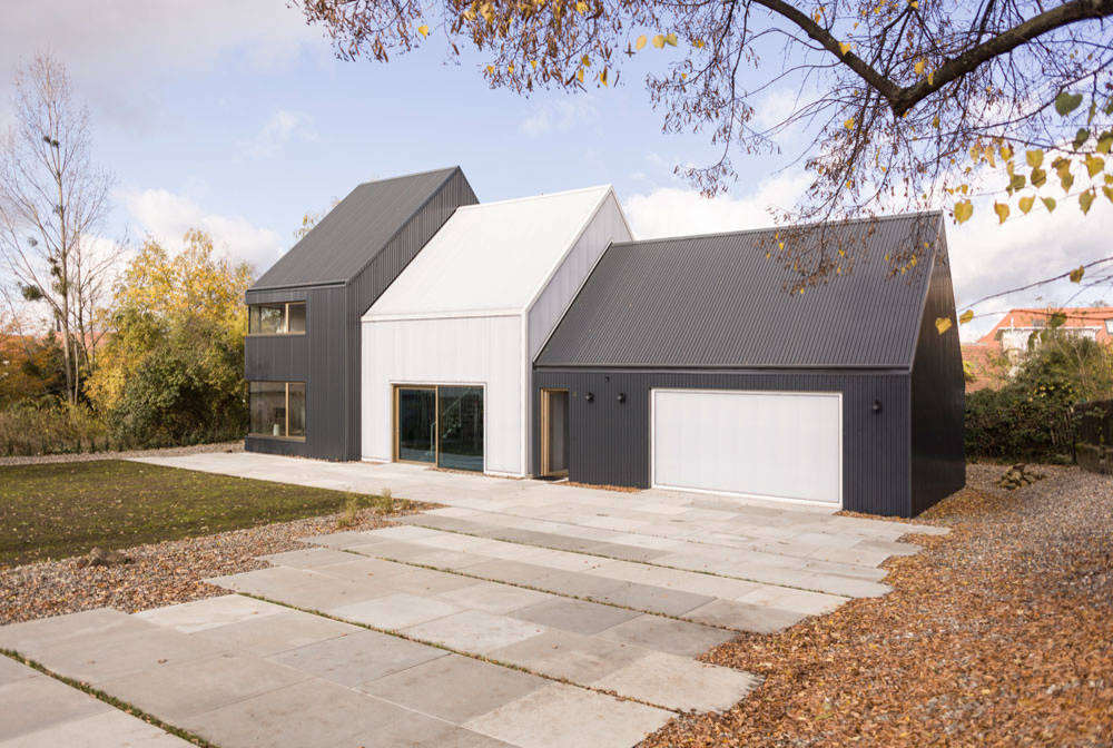 1. Holzfassade: natürlich und wohngesund. Noch jung ist die Holzfassade dieses Hauses, ein Entwurf von KU Architekten, die ganz bewusst auf das Naturmaterial setzen und ihren Entwurf damit von den traditionell verputzten Fassaden der Umgebung absetzen. Die Fassade wird mit der Zeit vergrauen und sich farblich an die zumeist mit Holz verkleideten Giebel anpassen.
