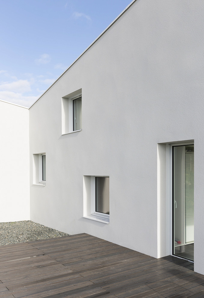 Ursprünglich wünschten sich die Eigentümer eine Holzverkleidung für die Fassade, aber die Architekten waren von der Idee nicht überzeugt, weil das für die Bretagne und speziell für die Region Süd-Finistère eher untypisch wäre. „Schließlich konnten wir sie für einen weißen Putz begeistern, der viel besser in die regionale Architekturlandschaft passt.“