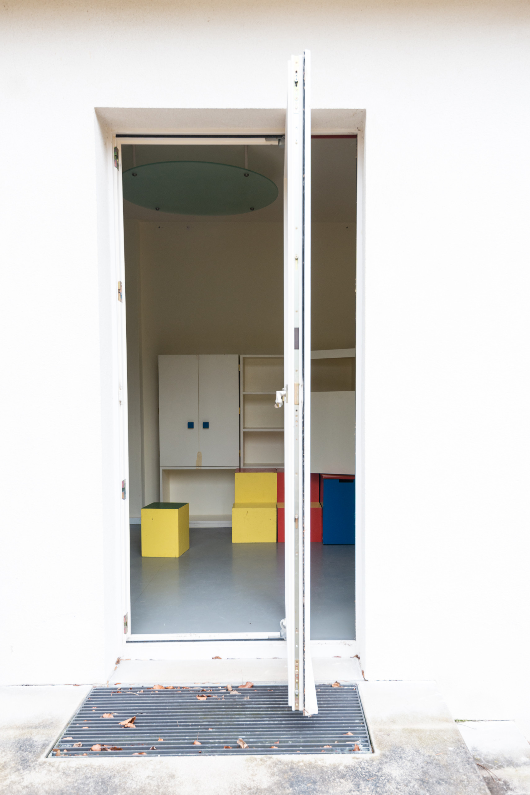 Der zentrale Raum wird lediglich über ein Panoramafenster auf Seiten der Arbeitsnische und sandgestrahlte Oberlichtfenster belichtet. Diese Introvertiertheit war gewünscht und erinnert an japanische Tatami-Räume – tatsächlich integrierten die Bauhäusler Elemente aus fernöstlichen Mediationstechniken in den Unterricht. „Das ist der esoterische Aspekt des Bauhauses, deren Repräsentanten Itten und Muche waren. Itten trat später der Mazdaznan-Sekte bei und warb auch am Bauhaus um Anhänger. Gropius hat damals dagegen gehauen, damit deren Einfluss nicht stärker wurde“, sagt Siebenbrodt.