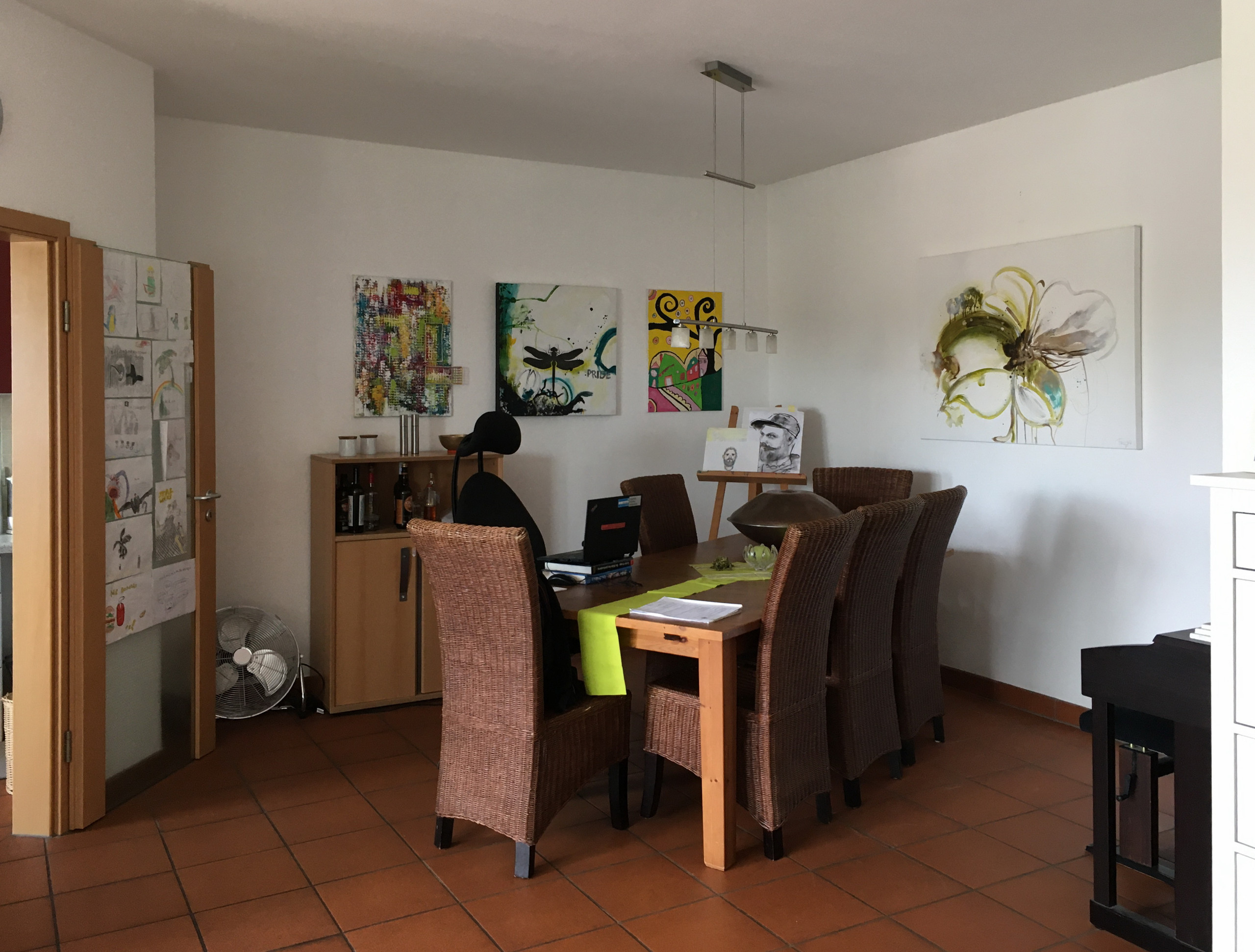 Der Vater ist in der Pharmaindustrie tätig, ist in seiner Freizeit jedoch gern künstlerisch. So stammt die an der Wand lehnende Leiter aus seiner Hand sowie einige der Bilder in der Wohnung. Bei der Leinwand mit Elefantenmotiv handelt es sich um ein Geschenk, das die Expertin begeistert prominent platzierte.