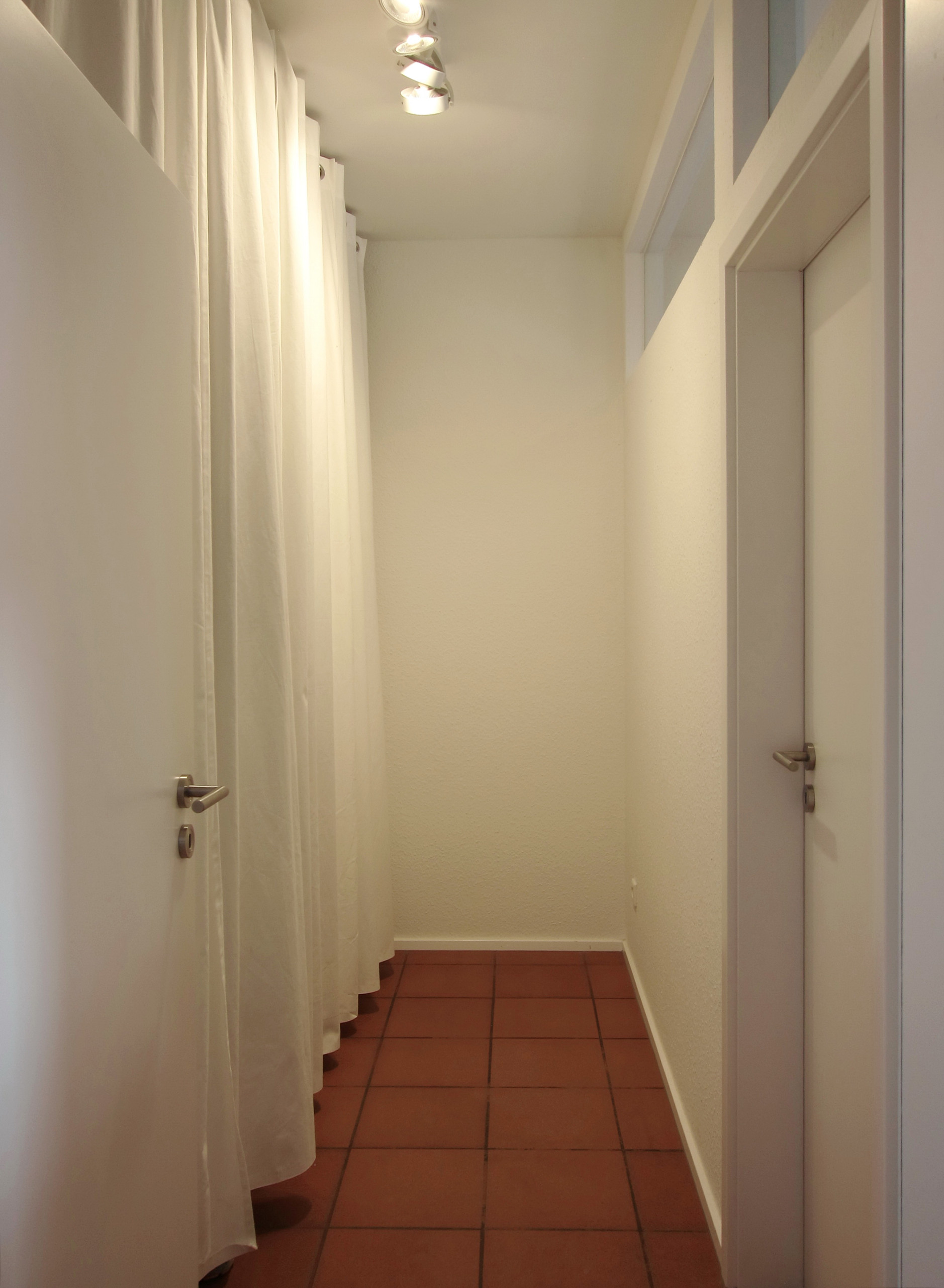 Mehr Platz bei gleichem Platz. Vor dem Jugendzimmer entstand ein kleiner Gang mit Ankleide. Schlicht und dezent hinter hellen Vorhängen verschwinden hier die Kleidung und was es sonst noch zu verstauen gilt. Wie so oft war auch bei diesem Projekt Stauraum ein wichtiges Kriterium.