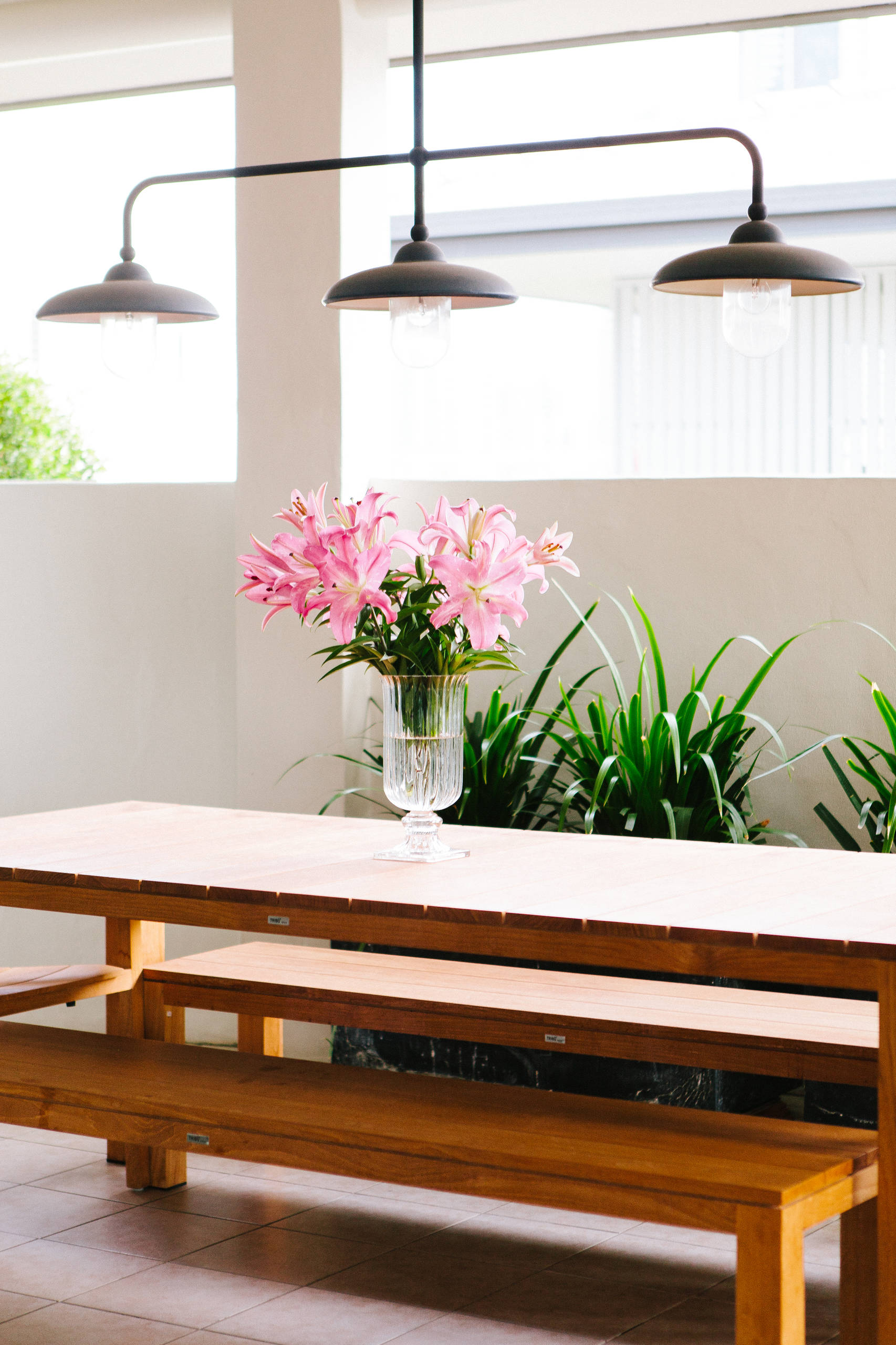 „Bei überdachten Außenbereichen ist es aber natürlich auch möglich, etwas Schmuckes und Dekoratives zu verwenden“, sagt Yetgin – lichttechnisch bieten schöne, für den Außenbereich geeignete Pendelleuchten dieselbe Funktion.