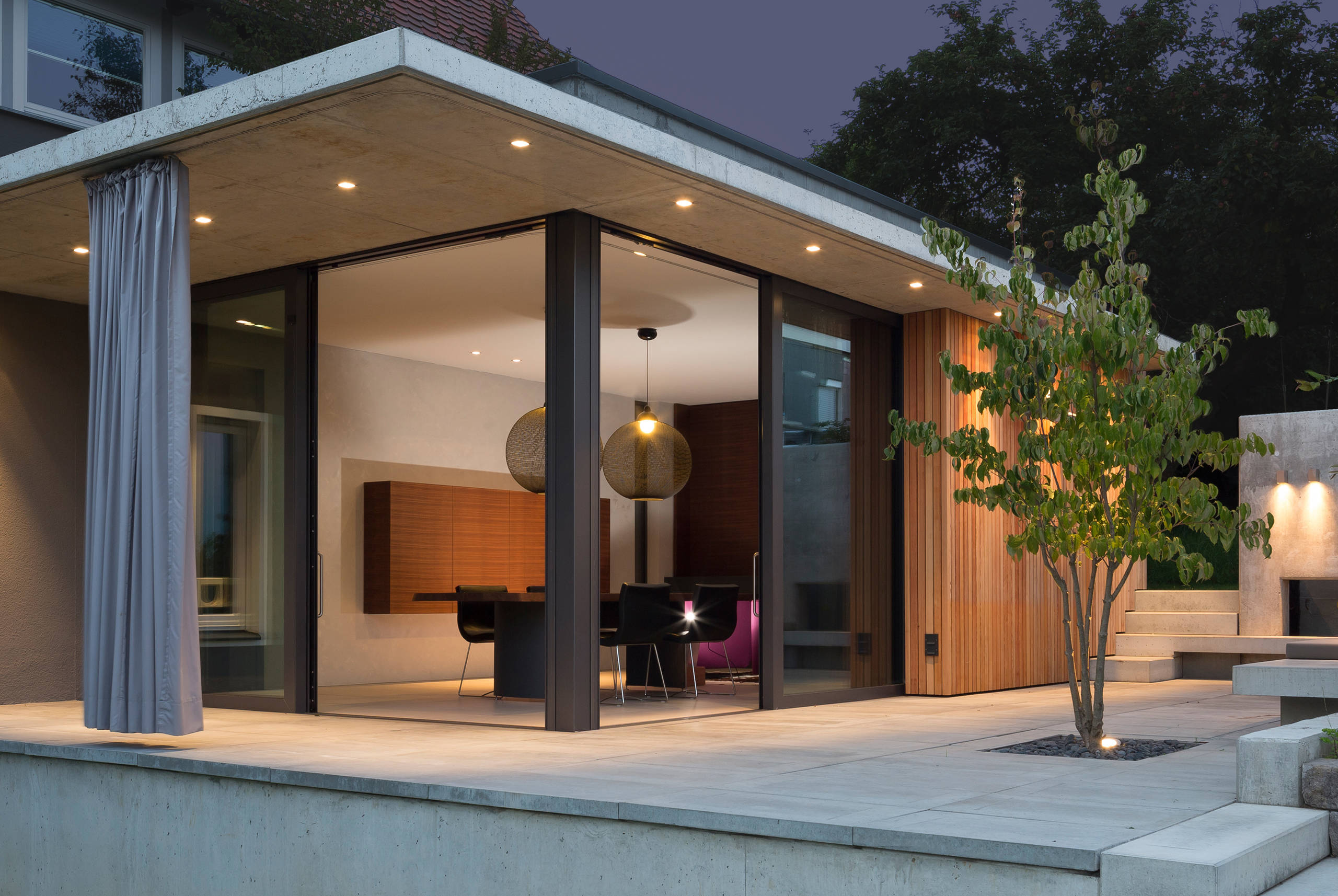 Prinzipiell geht es bei der Balkon- und Terrassenbeleuchtung darum, die Möglichkeit zu schaffen, überhaupt (nach) außen schauen zu können. „Sonst hat man eben immer die schwarzen, spiegelnden Scheiben vor der Nase, wo nur der Innenraum reflektiert wird“, sagt Yetgin. „Wer sitzt schon gerne im Dunkeln oder schaut ins Leere? Erfahrungsgemäß möchten die Deutschen vor allem atmosphärisches Licht auf dem Balkon und der Terrasse einsetzen, weniger eine grelle Allgemeinbeleuchtung.“ Außerdem wird durch eine gezielte Außenbeleuchtung die Wohnfläche gefühlt um einige Quadratmeter größer.