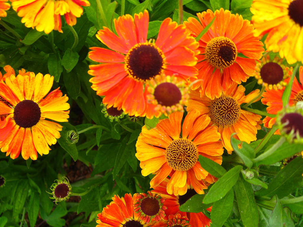 Das Ziel ist, die Blütezeit ein paar Wochen hinauszuzögern, was zu mehr Blüten und einem buschigen Wuchs führt. Eine Abwandlung davon: Nur jeden zweiten Spross (oder nur den äußeren Ring) kürzen, damit eine Hälfte der Pflanze zum üblichen Zeitraum blüht, die andere etwas später, und sich so der Gesamtzeitraum der Blüte verlängert. Ein Nebeneffekt: Die Stängel werden kräftiger und knicken bei Wind nicht so leicht um. Gut geeignet für den Chelsea Chop sind insbesondere Sonnenbraut (Helenium, Foto), großwüchsige Sedum-Arten, Phlox, Sonnenhut (Echinacea), Rudbeckien und Lavendel.