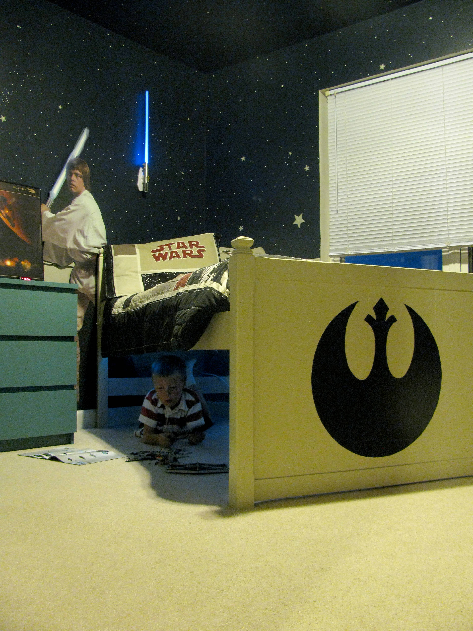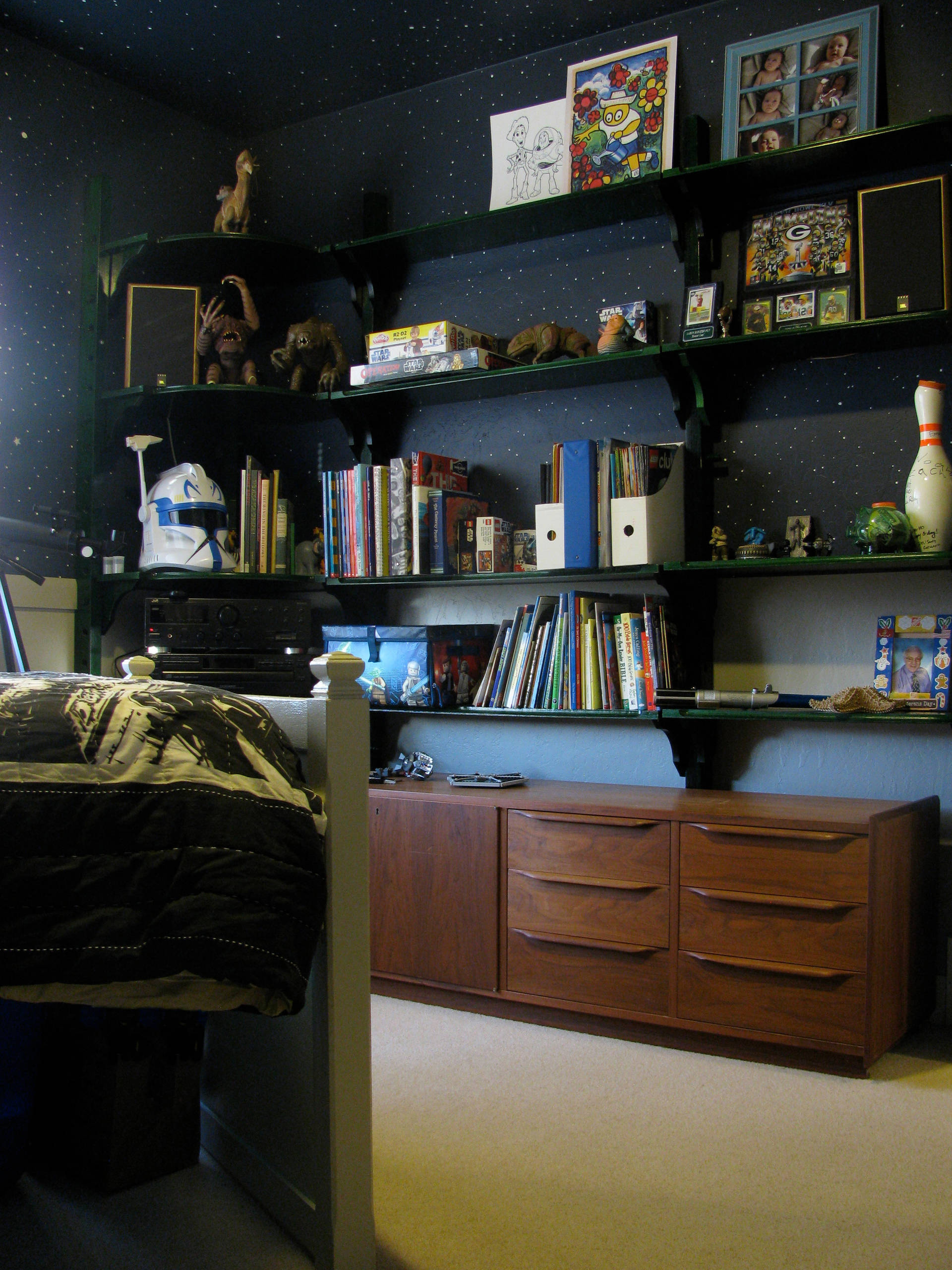 Und irgendwo zwischen diesen Abermilliarden und 3000 liegt dann auch die Antwort auf die Frage, bis wie viel der Bewohner dieses Star-Wars-Zimmers beim Zählen seiner Sterne schon gekommen ist. Aber bei fremden Galaxien sollte man besser noch eimal nachzählen…