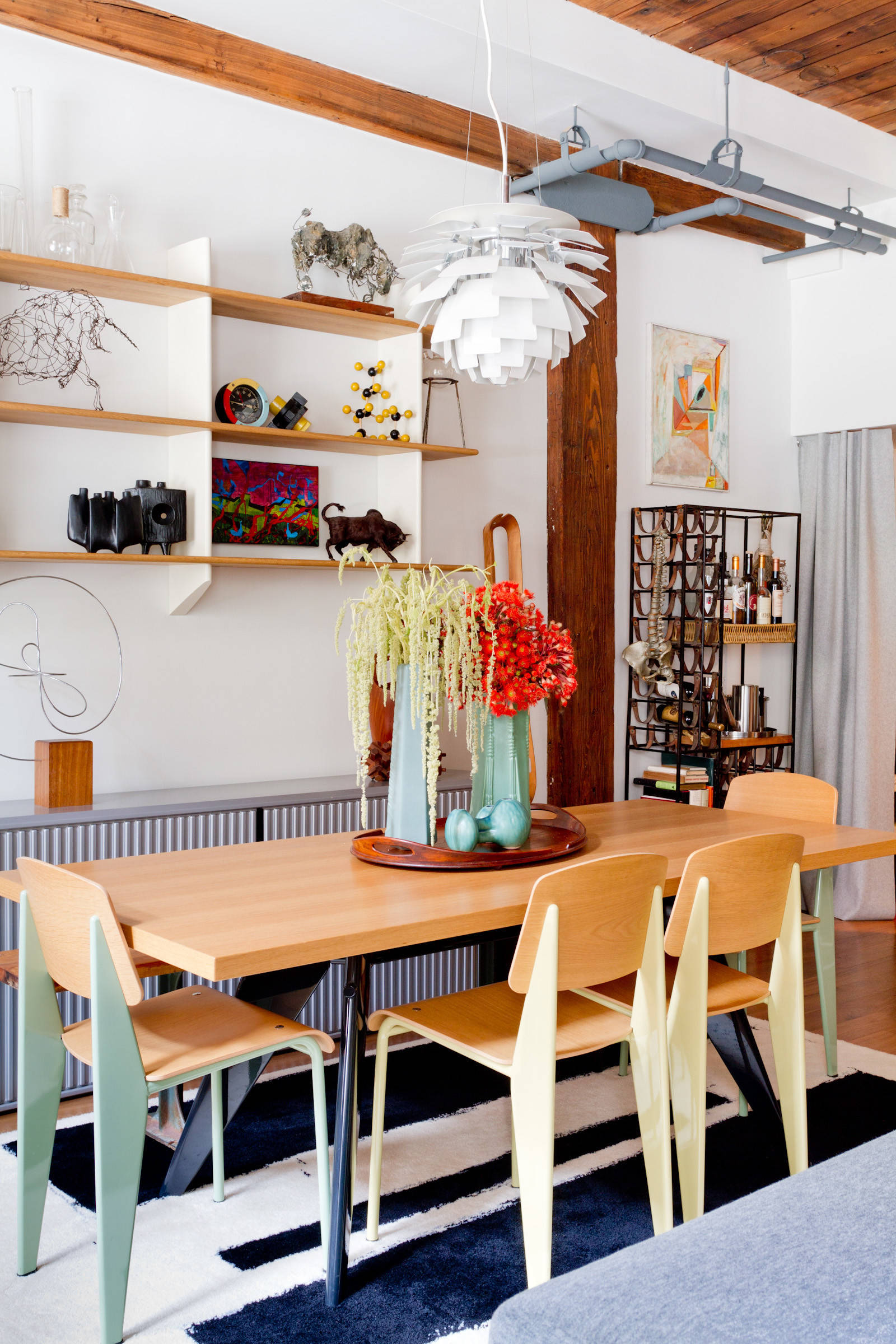 Neben dem künstlerischen Anspruch, den ein Gestalter an seine Stuhlkreationen hat, ist vor allem auch die Statik bei der Entwicklung eines Sitzmöbels eine große Herausforderung. Und genau jene Kräfte, die auf Möbel wirken, hat keiner so schön ins Rampenlicht gestellt, wie der französische Designer Jean Prouvé mit seinem berühmtem „Standard Chair“ – der das meiste Gewicht auf seinen konisch geformten Hinterbeinen trägt. Der Klassiker aus Sperrholz und gefaltetem Stahlblech von 1934 ist heute wieder en vogue, da seine robuste und zugleich federleichte Form so wunderbar zu Industrial- und Mid-Century-Look passt.