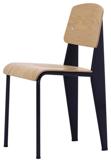 Dem französischen Gestalter Jean Prouvé war es ein Anliegen, bei seinen Möbeln die einwirkenden Kräfte sichtbar zu machen. Da ein Stuhl das Gewicht des Oberkörpers an den hinteren Beinen aufnimmt, sind diese beim „Standard“ stark ausgeprägt und bestehen aus voluminösen Hohlkörpern. Vorne reichen feine Stahlrohre zum Halt, da sich hier das Gewicht beim Sitzen relativ schwach auswirkt.