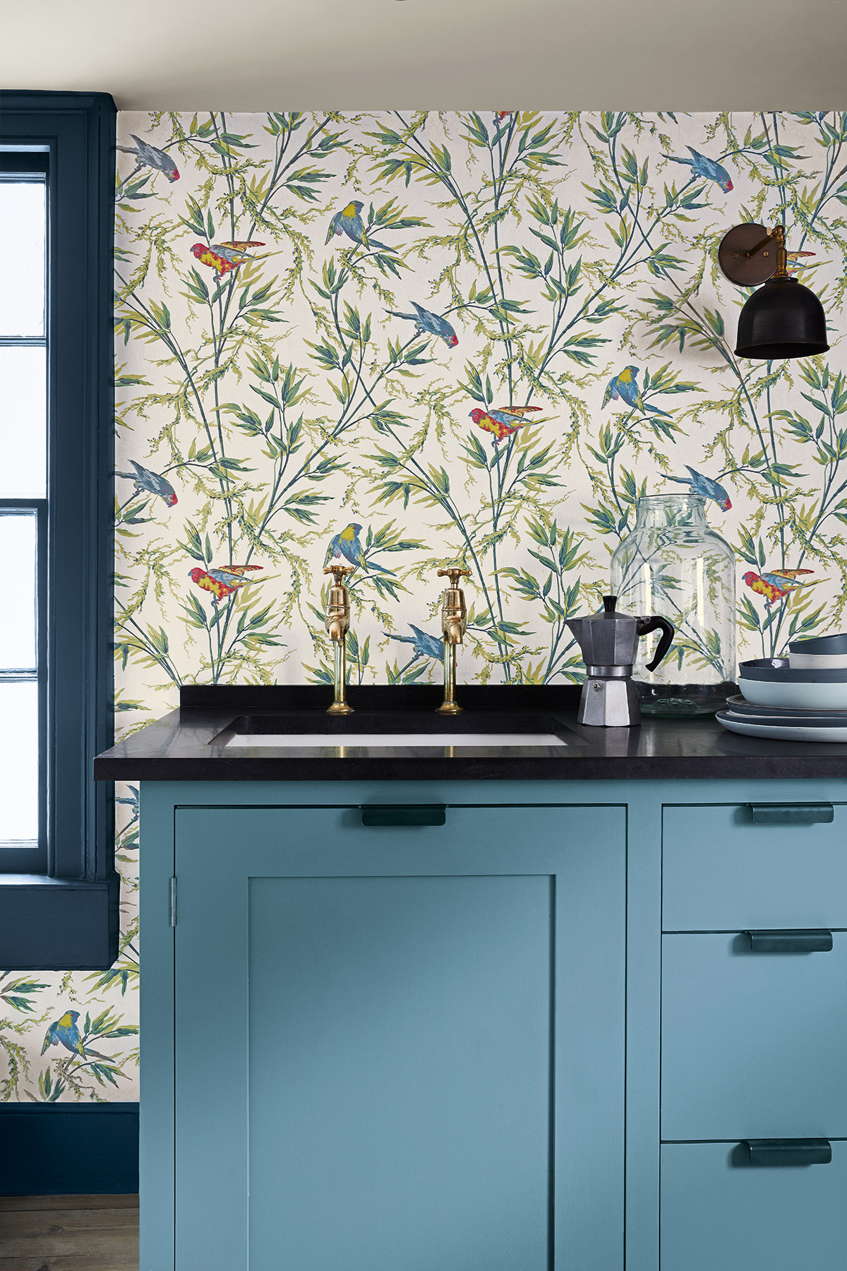 Mit großen Blütenkelchen verwandelt „Ava“ von Sandberg diese Küche in einen gemütlichen und zugleich lebhaften Ort.