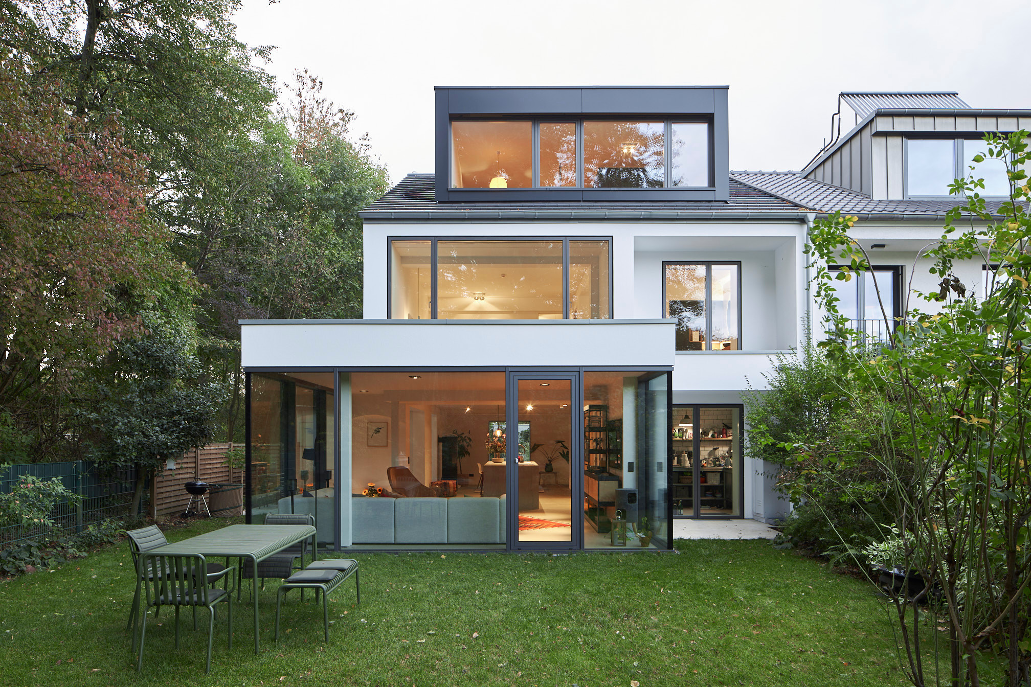 9. Clever vergrößert. Mehr Fläche und mehr Licht sollten es für ein Reihenendhaus aus den Siebzigern werden. Falke Architekten realisierten die Wünsche mit einem Glasanbau und zwei Gauben.