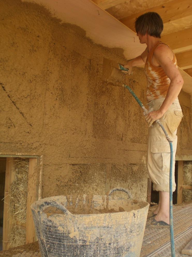 Die Außenwände erhalten einen wetterfesteren Kalkputz. „Die beste Lösung für außen ist eine hinterlüftete Fassade vor den verputzten Wänden“, rät Minke. Er sieht beim Bauen mit Stroh vor allem die planerischen Fähigkeiten der Architekten gefordert: „Planung ist enorm wichtig. Strohballen gibt es in unterschiedlichen Maßen. Da muss klar sein, wie sie eingebaut werden sollen.“