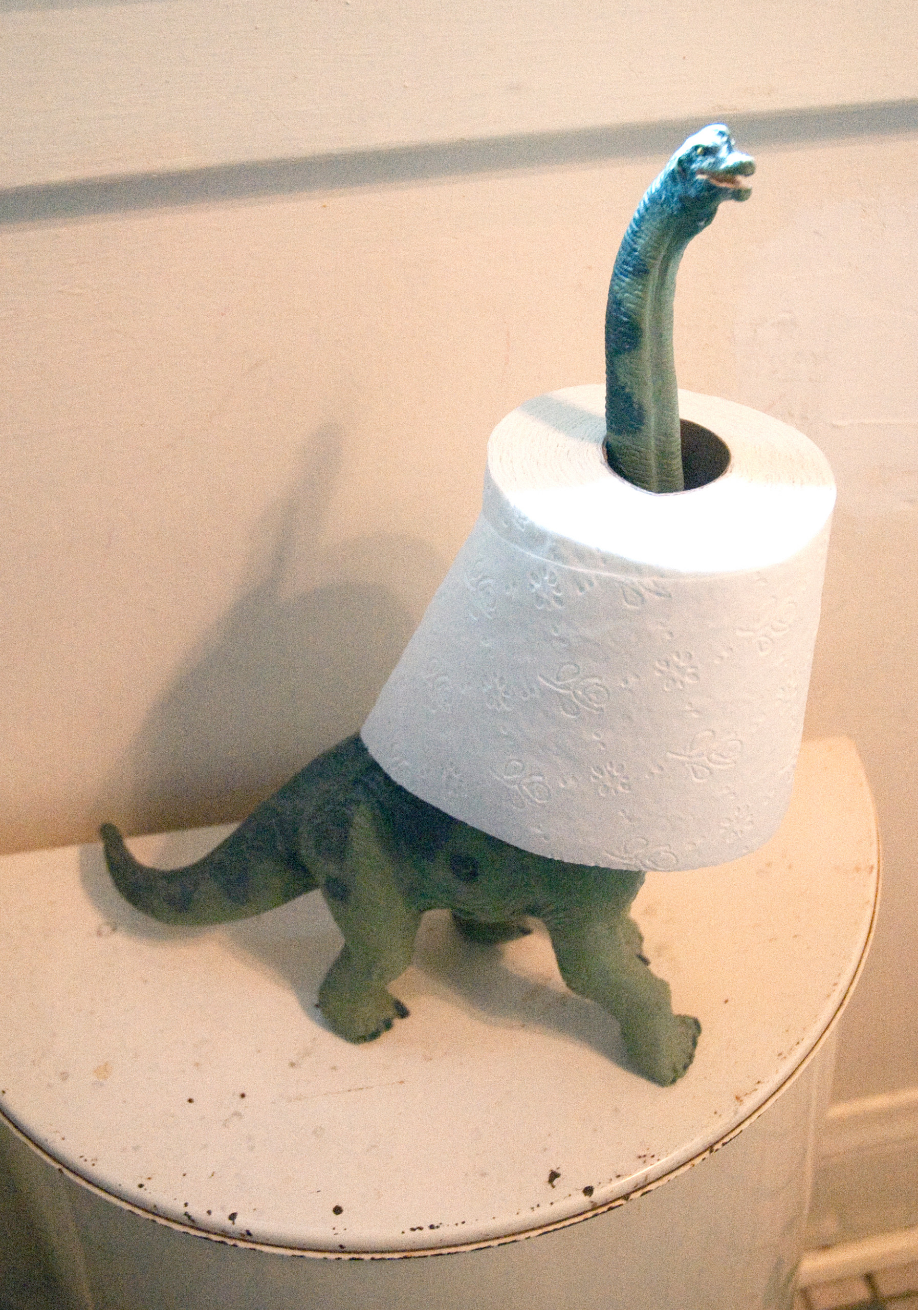 Einen anderen zuverlässigen und standfesten Halter für das Toilettenpapier haben wir in der Houzz-Community gefunden. Dank seines beeindruckend langen Halses braucht es noch nicht mal weitere Umbaumaßnahmen. Auf dem stillen Örtchen ist er mit seinem weißen Schal auf jeden Fall ein lustiger Blickfang.