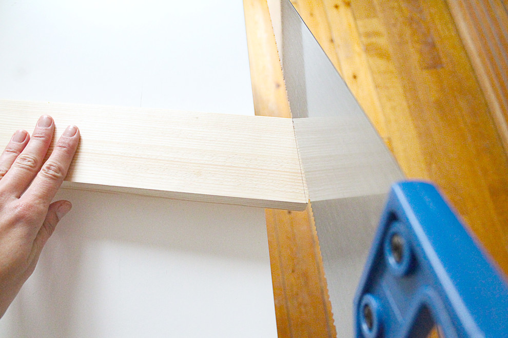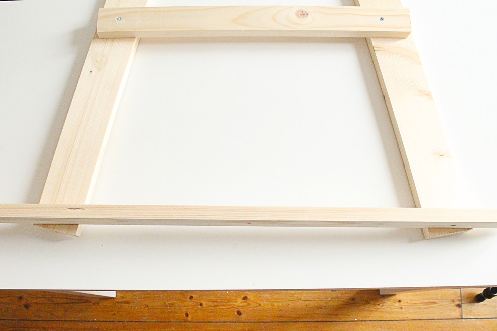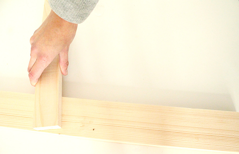 Legen Sie das 50-Zentimeter-Brett so an, dass seine Außenkante am Außenrand des 180-Zentimeter-Brettes abschließt.