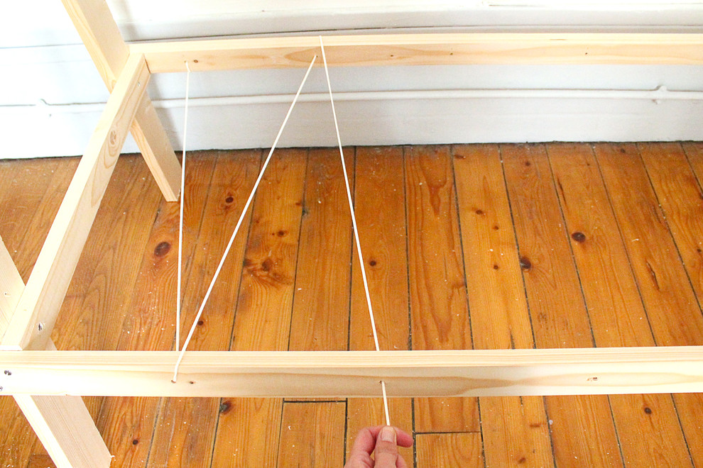 Nachdem die Beine und die Querlatten vorbereitet sind, können Sie den Kleiderständer zusammenfügen.