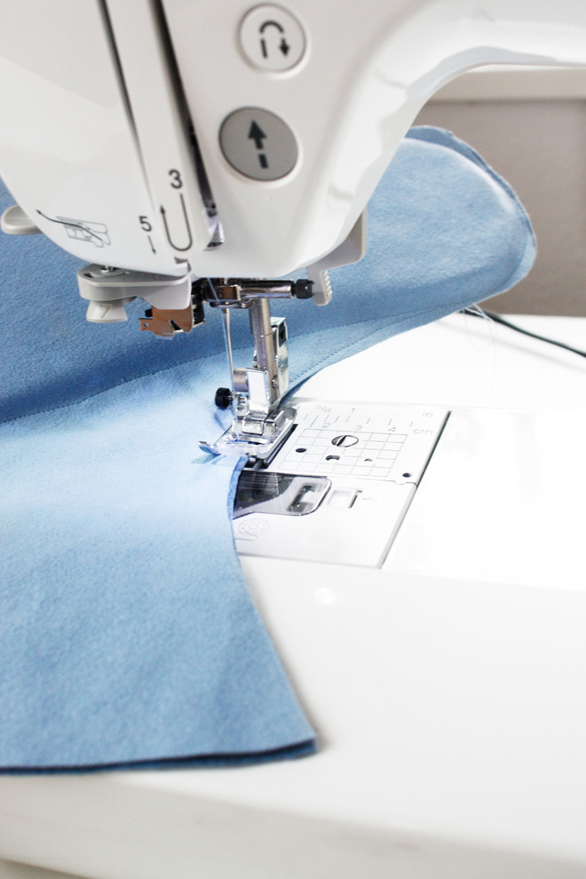 Schließlich nähen Sie nah an der Kante entlang alle Lagen zusammen. Eine einfache Naht genügt in der Regel. Wenn Sie es optisch mögen, können Sie die Kanten zusätzlich mit einem Zickzackstich einfassen.