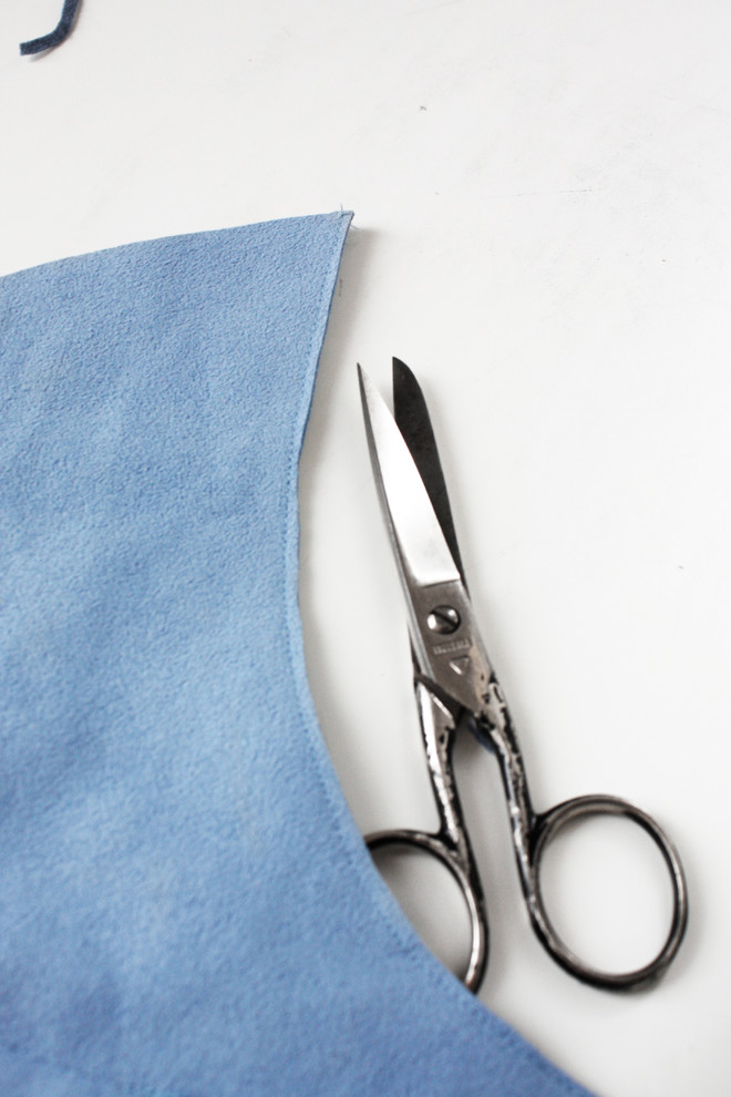 Auch simple Gästehausschuhe sollen Ihr Händchen für Gutgestaltetes zeigen. Versäubern Sie also noch die innere Kante des Fußrückenstücks, indem Sie mit der Schere dicht an der Naht entlang sauber zuschneiden.