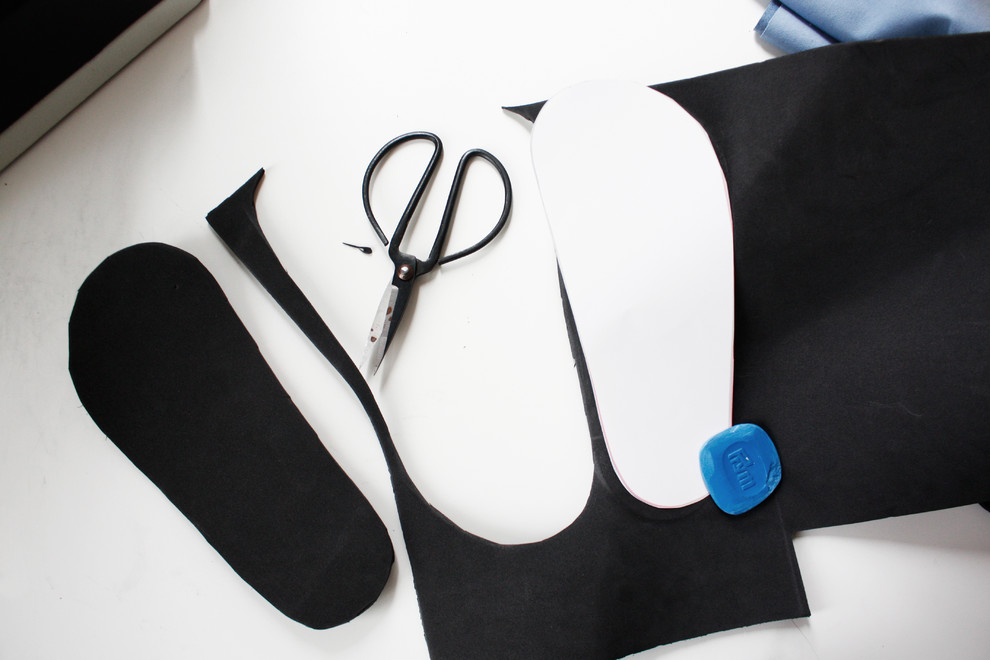 Die zuvor ausgedruckte und zugeschnittene Polsterschablone übertragen Sie nun mit Schneiderkreide zwei Mal auf Ihre Schaumstoff- bzw. Moosgummimatte. Mit einer normalen Papierschere scheiden Sie beide Teile aus.