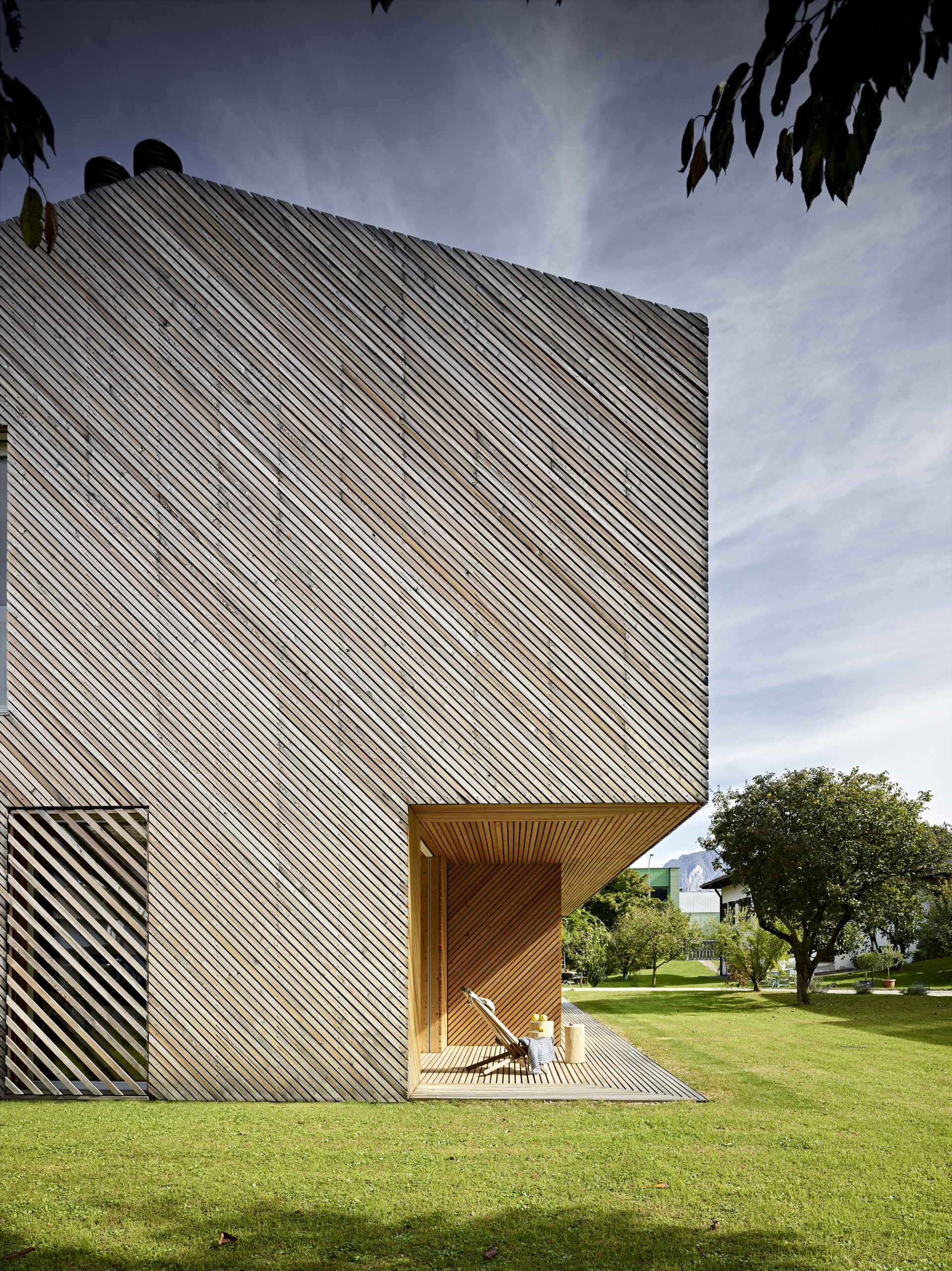 Elisa Burnazzi und Davide Feltrin erhielten den Auftrag, ein Energiesparhaus im italienischen Borgo Valsugana in der Provinz Trient zu bauen. Die junge Familie, der das Grundstück gehört, wollte in der Nähe der Familie wohnen und wünschte sich viel Platz zum Spielen im Freien. Im Zentrum des Projekts standen mehrere große Räume und Flächen, die von allen genutzt werden sollten: eine geräumige, umlaufende Veranda, ein einladender Wohnbereich und ein großer, gepflegter Garten.