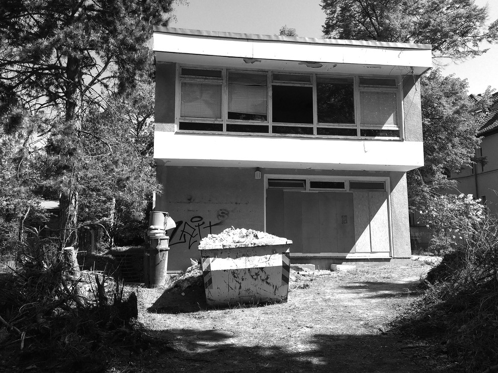 In ruhiger und bevorzugter Wohnlage in Berlin-Zehlendorf, umgeben von großzügigen Einfamilienhäusern und altem Baumbestand wirkte das kastenförmige Gebäude lange Zeit wie ein Fremdkörper. Erst war es eine Druckerei gewesen, dann die Botschaft der Mongolei, bis es als vernagelte Ruine zu verfallen drohte. Für die Architekten stand von Anfang an fest, dass das seit mehr als 10 Jahren leer stehende Gebäude mehr Potenzial barg als ein möglicher Neubau. „Allein die Ausnutzung der Fläche hätten wir für einen Neubau heute so nicht genehmigt bekommen“, erklärt Architekt Xaver Egger, der den Umbau zusammen mit seiner Kollegin Sandra Scheffl von Anfang an leitete.
