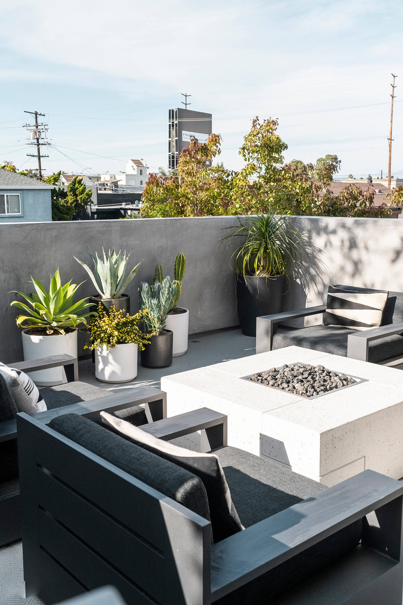 Besonders hübsch sieht eine farblich abgestimmte Pflanzen-Zusammenstellung aus, bei der zusätzlich Kontraste in Textur und Struktur berücksichtigt wurden. Arrangements aus einzelnen Pflanzen und Deko-Elementen wie Kerzen und Skulpturen sorgen auf dem Balkon für Wohnzimmer-Flair.