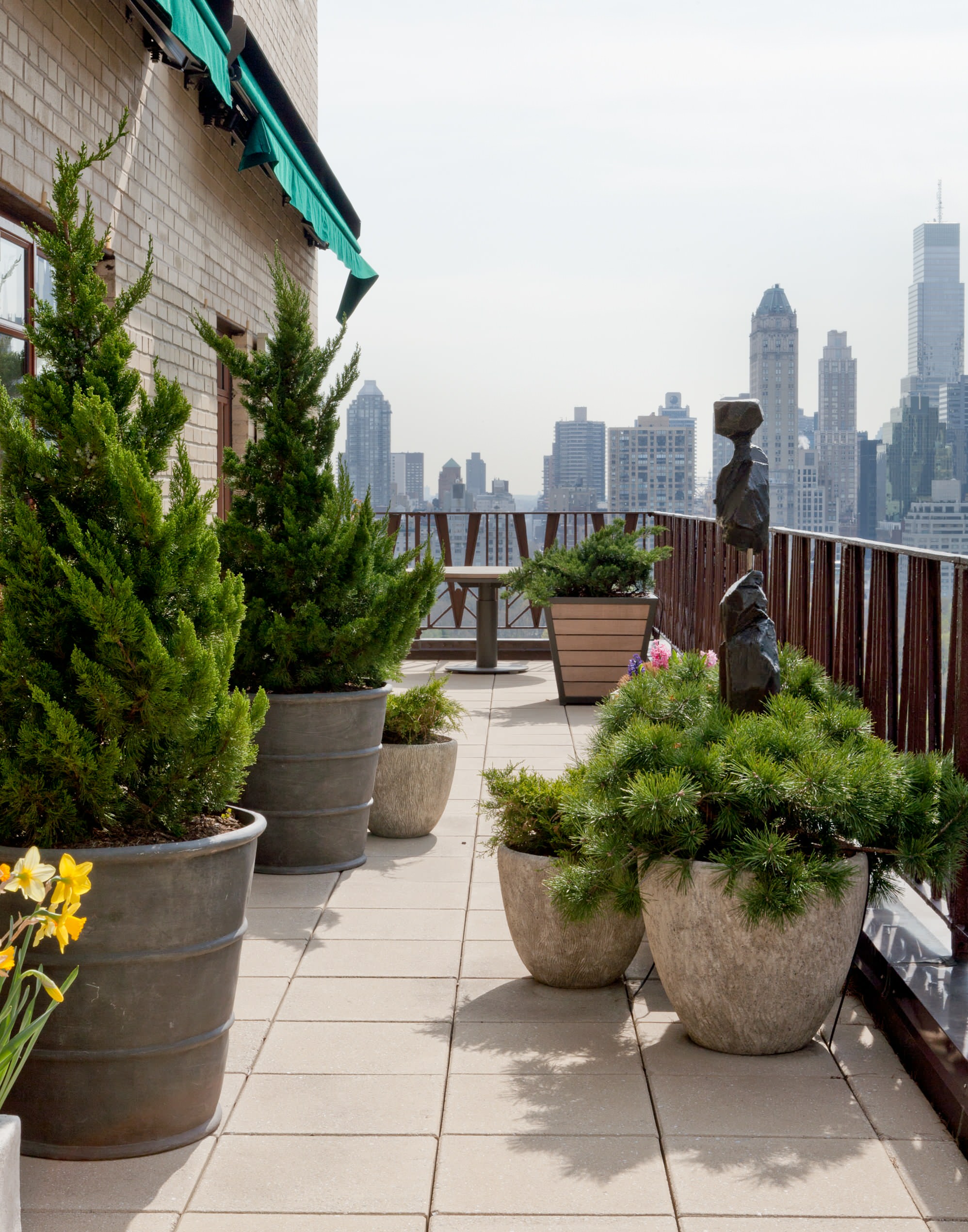 Auf dieser New Yorker Dachterrasse wurden Gehölze und Stauden gepflanzt.