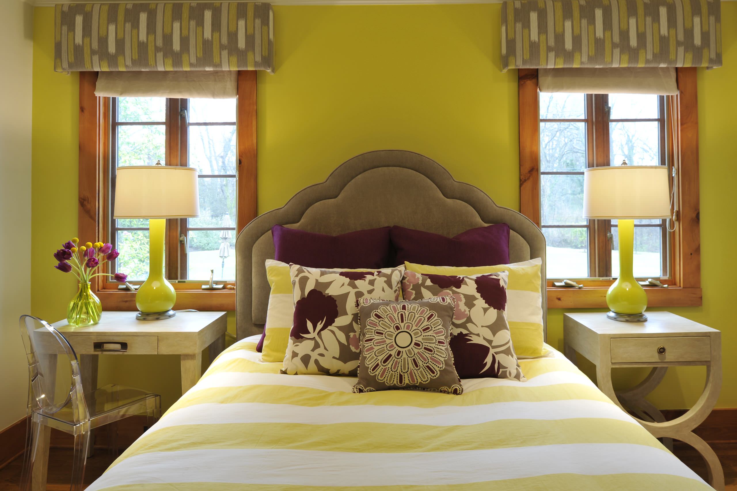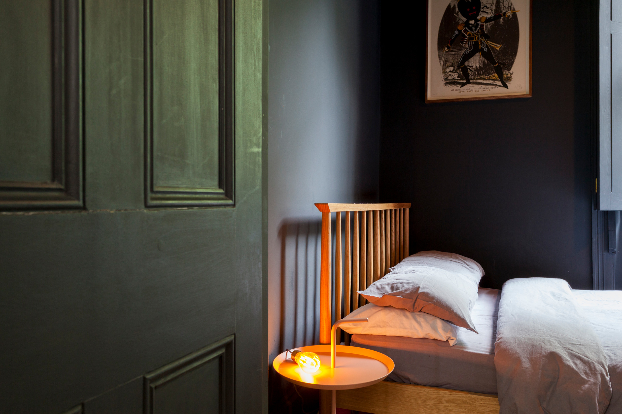 So wirkt das Orange dieses Bettgestells in der Umgebung dunkler Farben leuchtender als es in einem Umfeld mit ebenso intensiven Farben je wirken könnte. Umgekehrt finden wir diesen Kontrast häufig im klassischen skandinavischen Stil, bei dem ein Großteil der Einrichtung in Weiß- und Grautönen gehalten ist und sich ein buntes Sofa oder ein Sessel dank hervorstechender Farbgebung in den Vordergrund drängt.