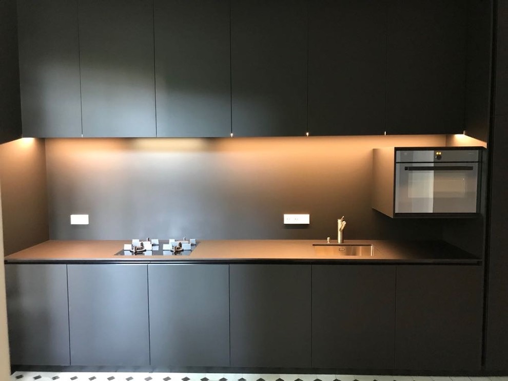 Im Bild: Eine Küche von Valcucine mit Fronten und Arbeitsfläche aus Glas, gesehen bei Küchen Atelier Piekarz