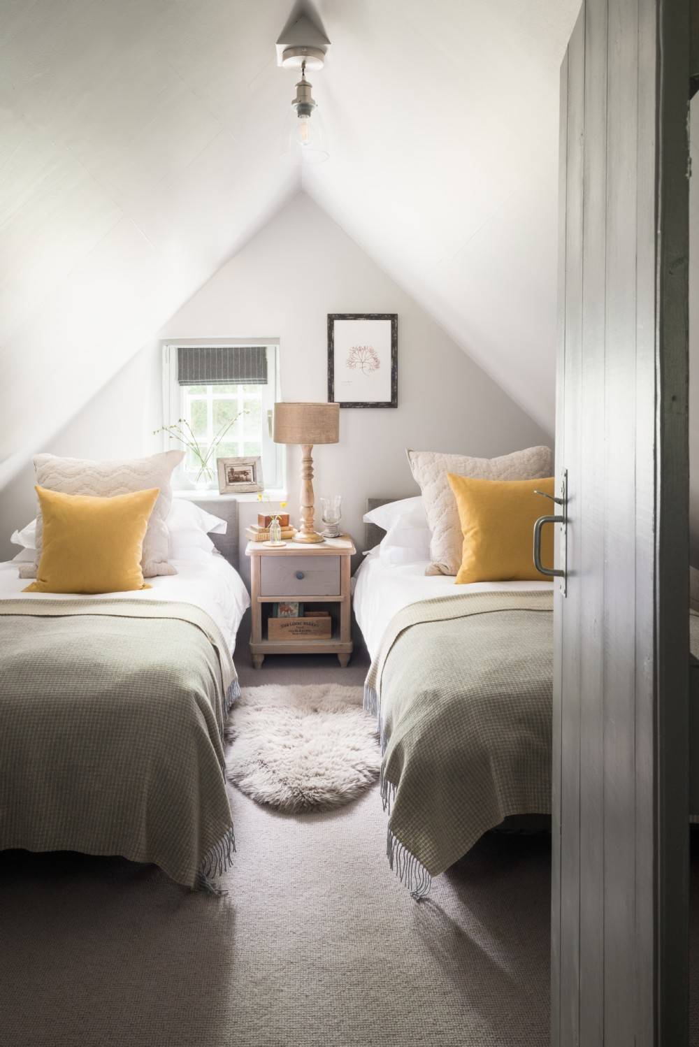 Tipps zur Anordnung: Wenn Sie ein Gästezimmer unter der Dachschräge einrichten, stellen Sie das Gästebett ruhig unter die Schräge. So wird aus der ungenutzten Ecke eine gemütliche Kuschelecke.