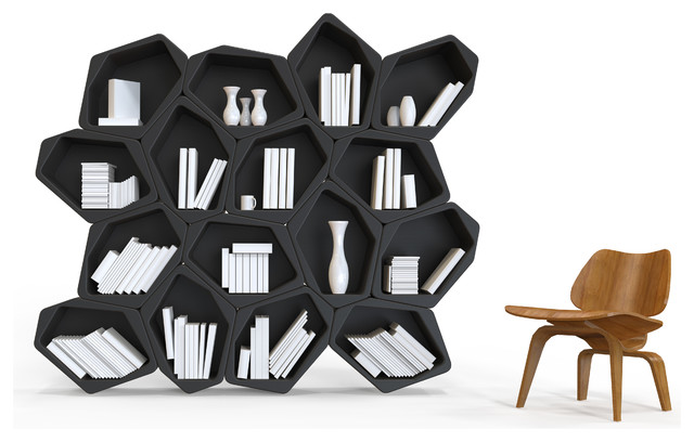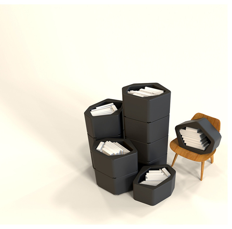 Auch das Regalmodul „Build“ von Movisi überzeugt durch seine Multifunktionalität. Es setzt sich aus beliebig vielen sechseckigen Boxen (à ca. 50 Euro) zusammen, die sich zu einem Regal zusammenstecken, aufeinander stapeln oder einzeln nutzen lassen. So entstehen daraus Regale, Raumteiler, Sitzgelegenheiten oder Transportboxen – ohne Schrauben oder Dübel: ein einfaches Klicksystem verbindet die Elemente miteinander.