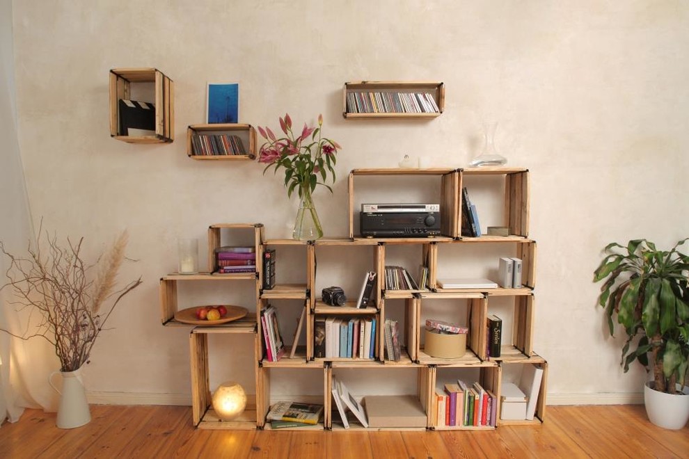 Auch Regale die aus klassisch rechteckigen Boxen bestehen sind praktisch – dem lästigen Aus- und Einpacken sagen Sie hiermit adé. Holzkisten sind zudem hochwertiger und stabiler als Pappkartons.