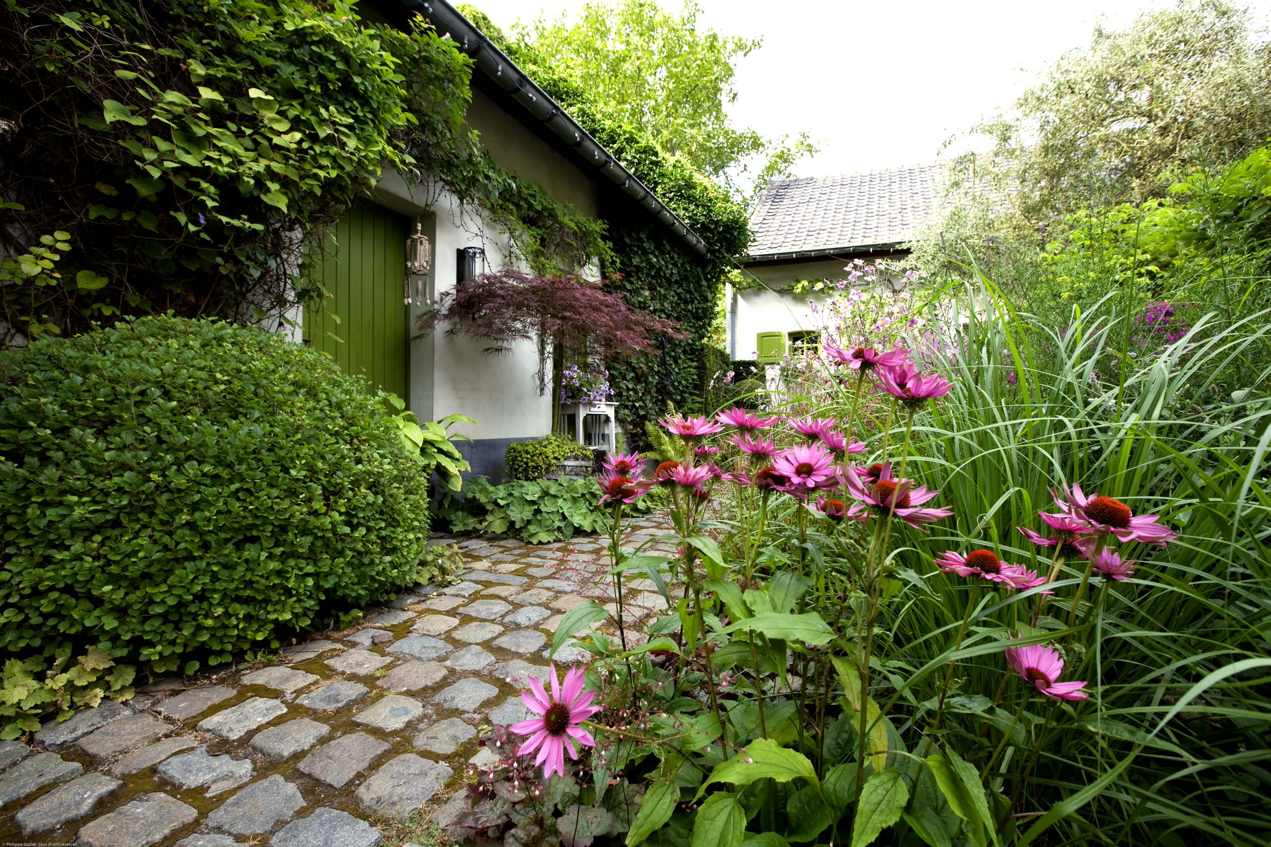 Die Straße zum Haus ist eine Sackgasse. Schon wenn man vom Parkplatz in den Garten schaut, bietet sich ein überwältigender Anblick: üppige Beete, die das Haus zu schützen, gar zu verstecken scheinen. Vor allem der Purpursonnenhut gedeiht hier hervorragend. Gelegen ist das Gehöft in der Provinz Limburg, mitten in der Natur, umgeben von Wäldern und Ackerland. Nur vereinzelt stehen Häuser in der Landschaft, auf den Straßen sind lediglich Traktoren und die Autos der Anwohner unterwegs.