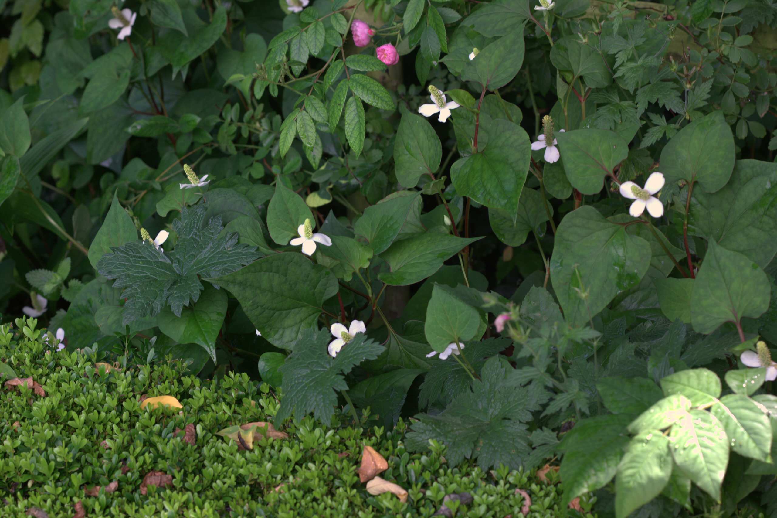Überall zieren kleinere Pflanzen die Ränder von Beeten und Sträuchern.