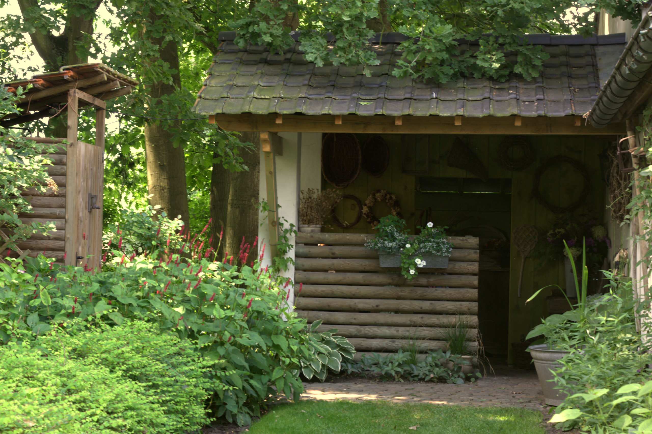 An der Rückseite des Büros befindet sich ein kleiner Unterstand für die vielen Gartengeräte, die Deferme für die aufwändige Pflege ihres grünen Reiches braucht. Es ist schon beeindruckend, dass nur zwei Personen dieses Arbeitspensum bewältigen.
