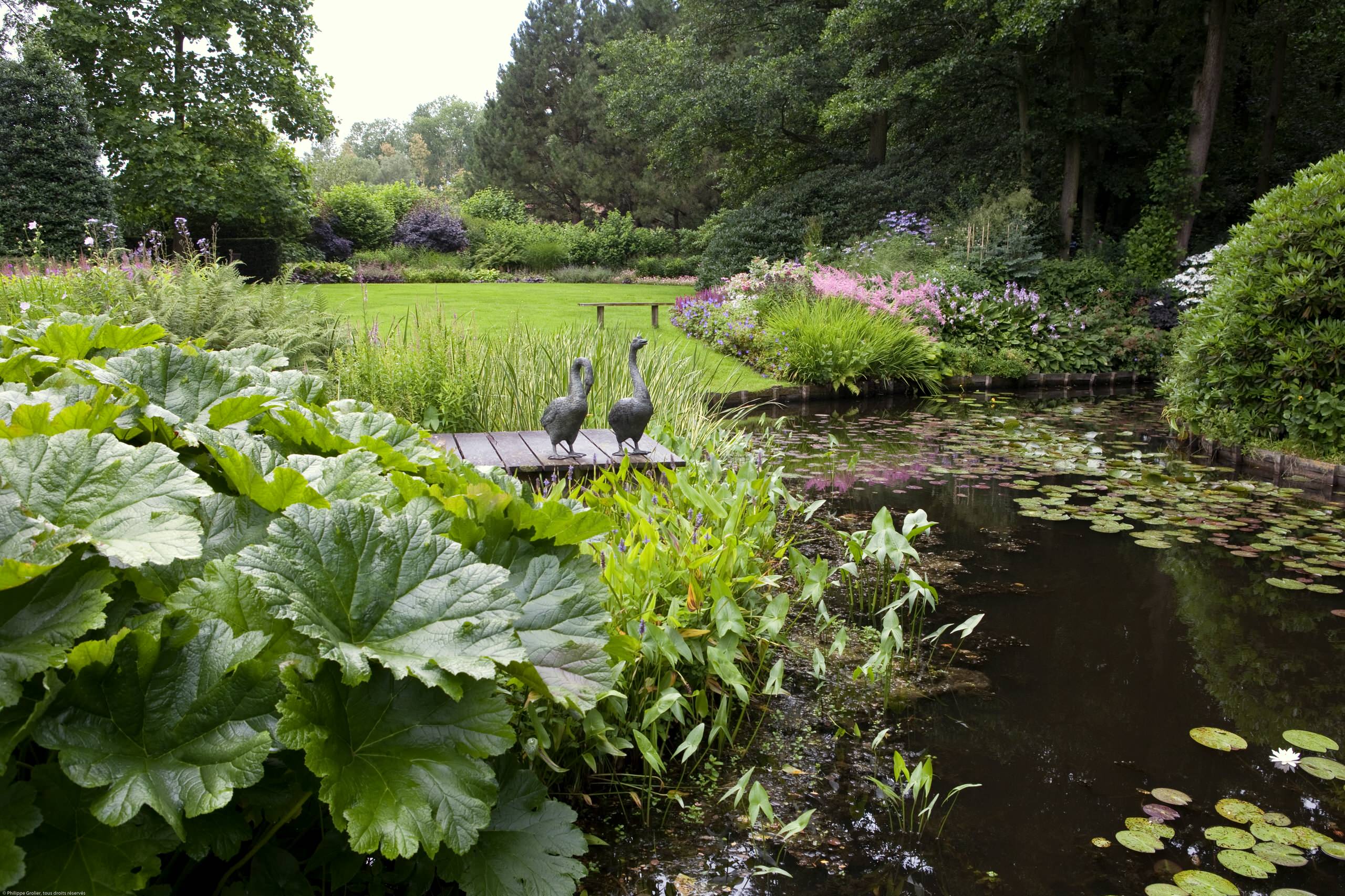 Hier findet man zum Beispiel Japan-Primeln, die im Sommer ihre Blütenpracht entfalten. Außerdem wächst am Ufer Schildblatt, das mit seiner enormen Blattfülle ein echtes Paradies für die Wasserbewohner ist.