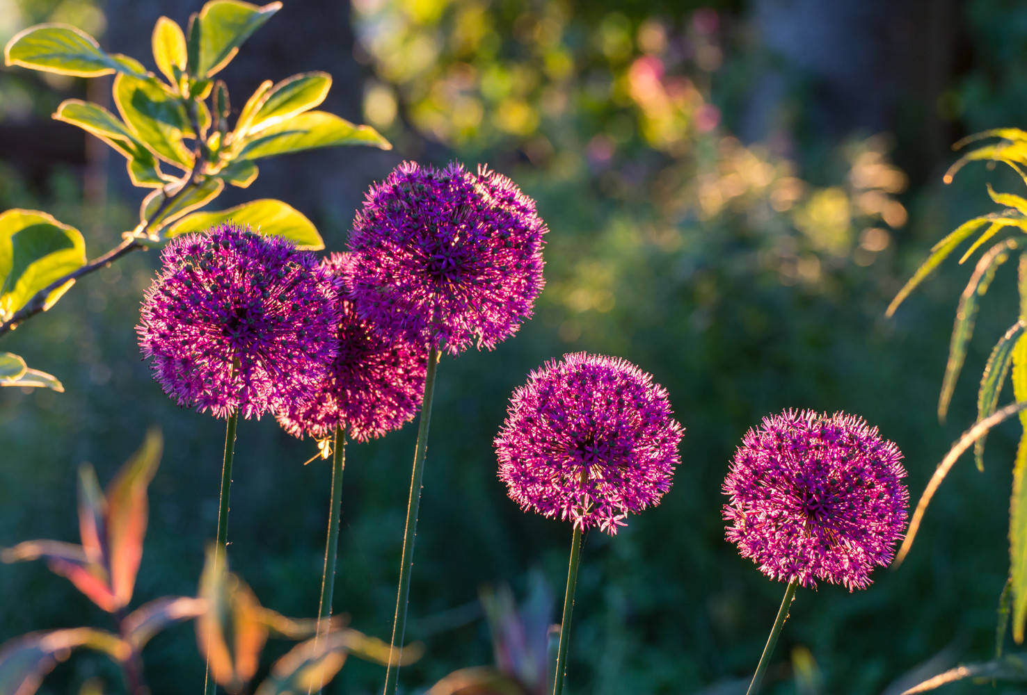 Der Purpur-Kugellauch Allium aflatunense ‘Purple Sensation’ liebt wie alle Lauchgewächse viel Licht und einen gut durchlässigen, sandigen Boden, in dem er sich ganz natürlich verbreitet. Oben auf den fast 80 Zentimeter hohen Stängeln spielen die Blüten von der Größe eines Tennisballs ein Versteckspiel mit der Sonne. Wie Gräser, aber viel früher, biegen sie sich und wiegen sich im Wind, wodurch sie die ganze Wiese in Bewegung versetzen.